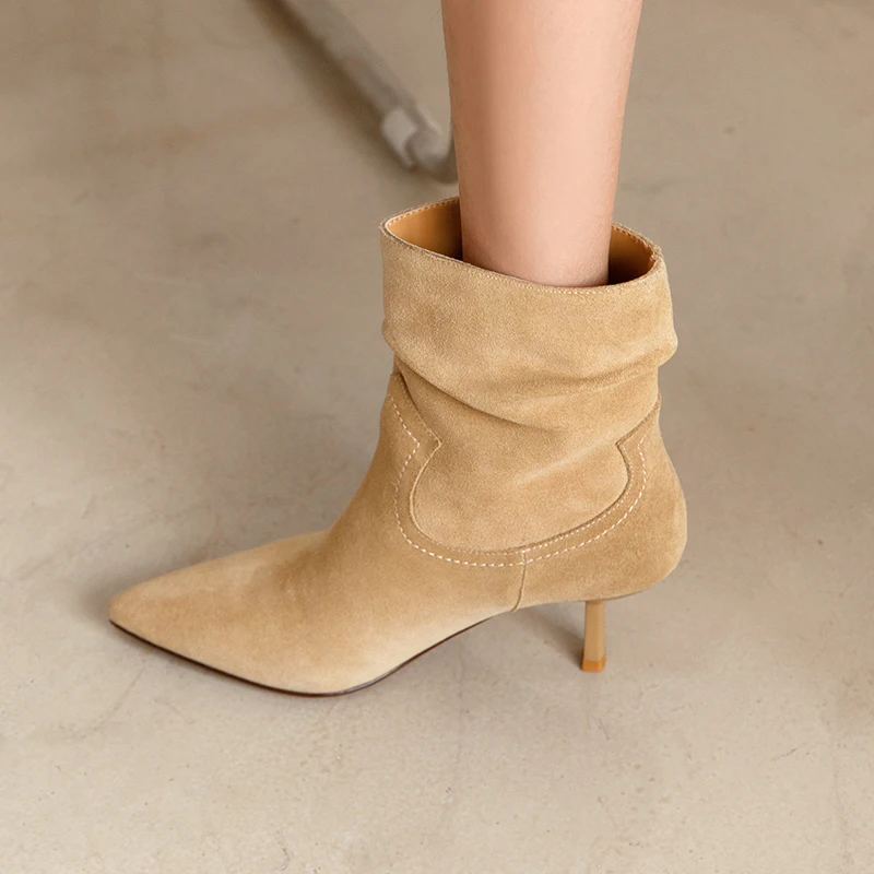 Our selection of boots and booties is perfect for braving winter in style or adding a chic touch to your autumn outfits. Choose from leather boots, suede boots, or rain boots to combine functionality with elegance. Knee-high boots, over-the-knee boots, and statement boots make a bold impression, while leather booties and classic black booties remain timeless must-haves.