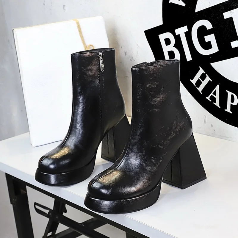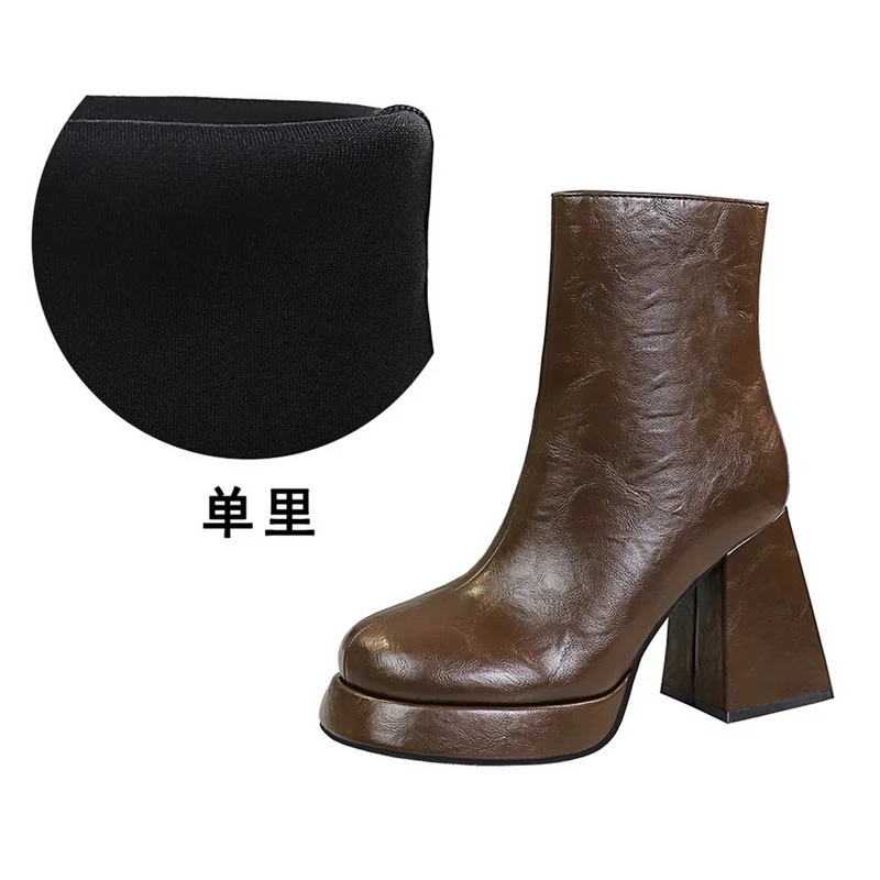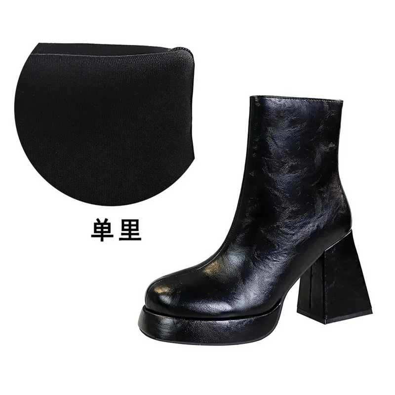 2024 Design Fashion Round Toe Chunky High Heels Autumn Winter Shoes Ankle Boots for Women