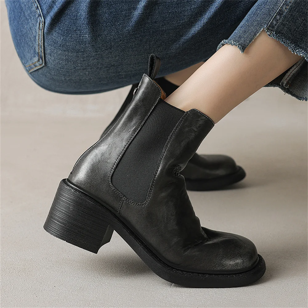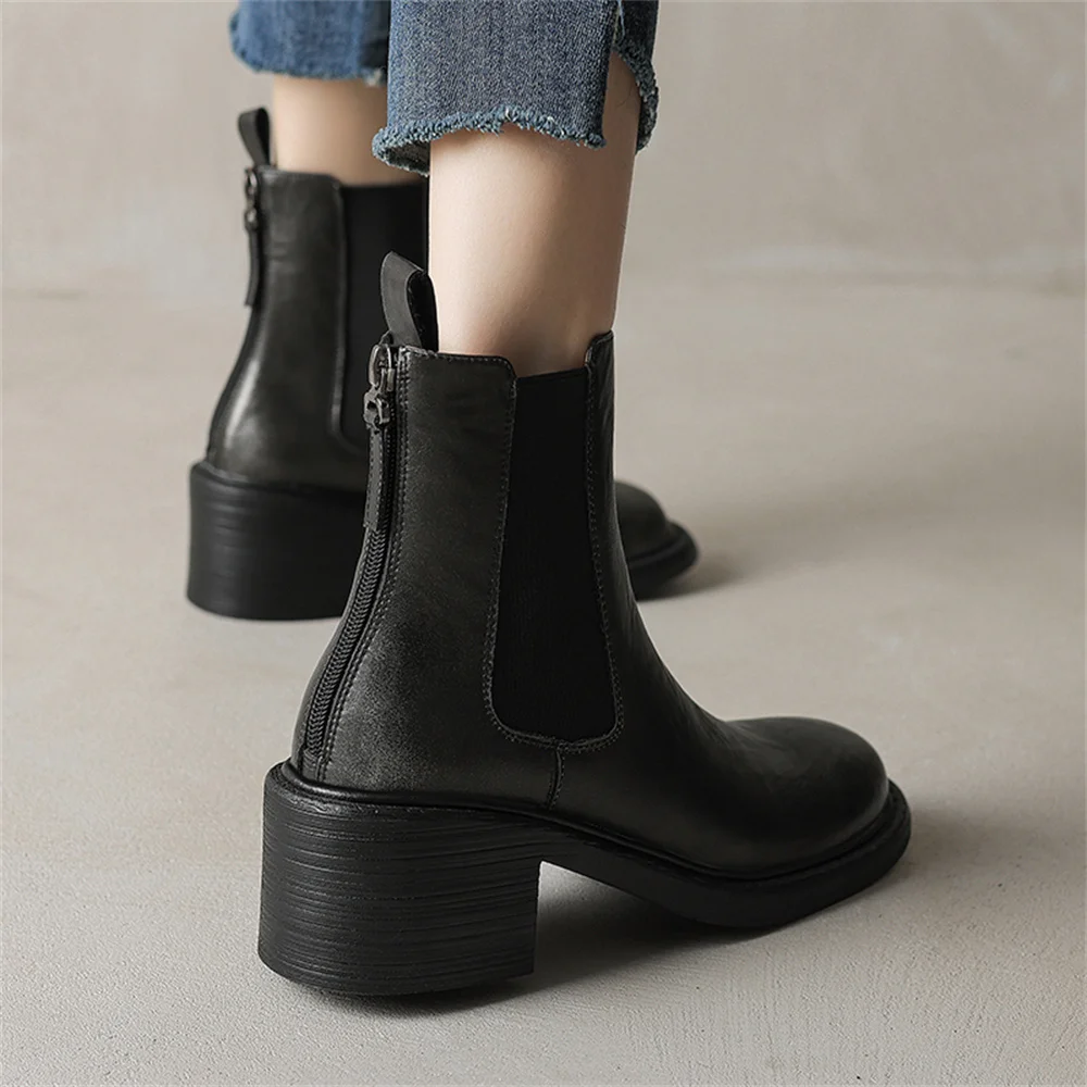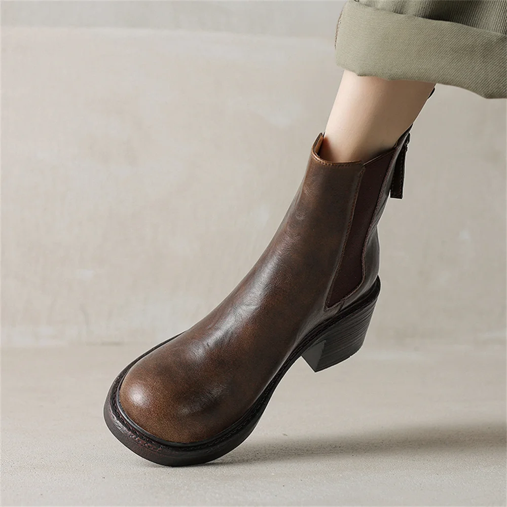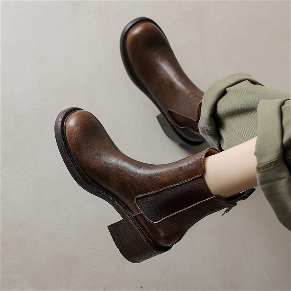 Ankle Boots British Style: Warm Round Toe Retro Motorcycle Footwear