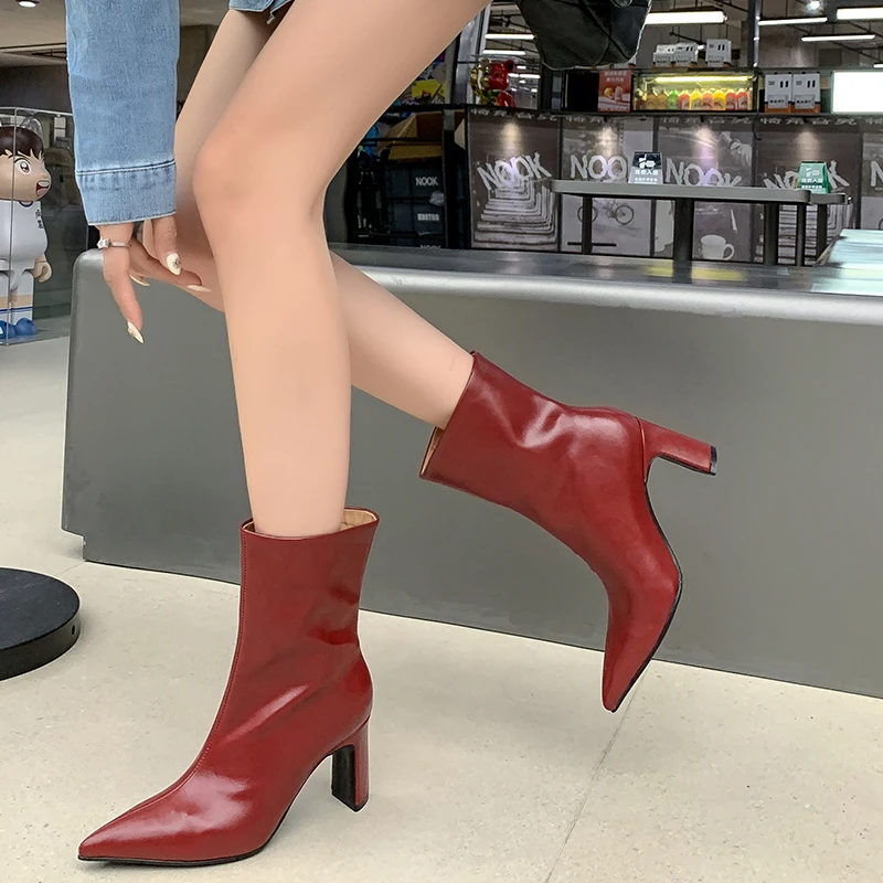 Ankle boots real leather high heels for casual office wear