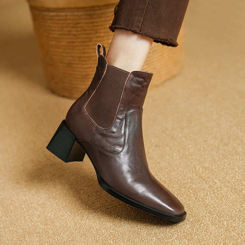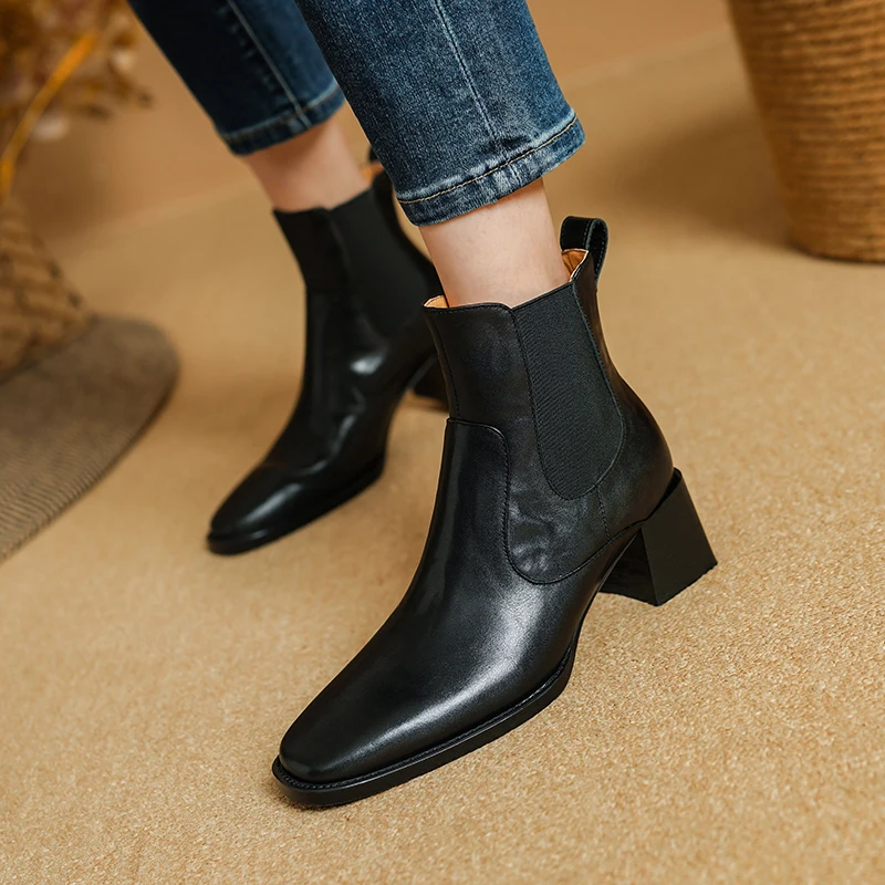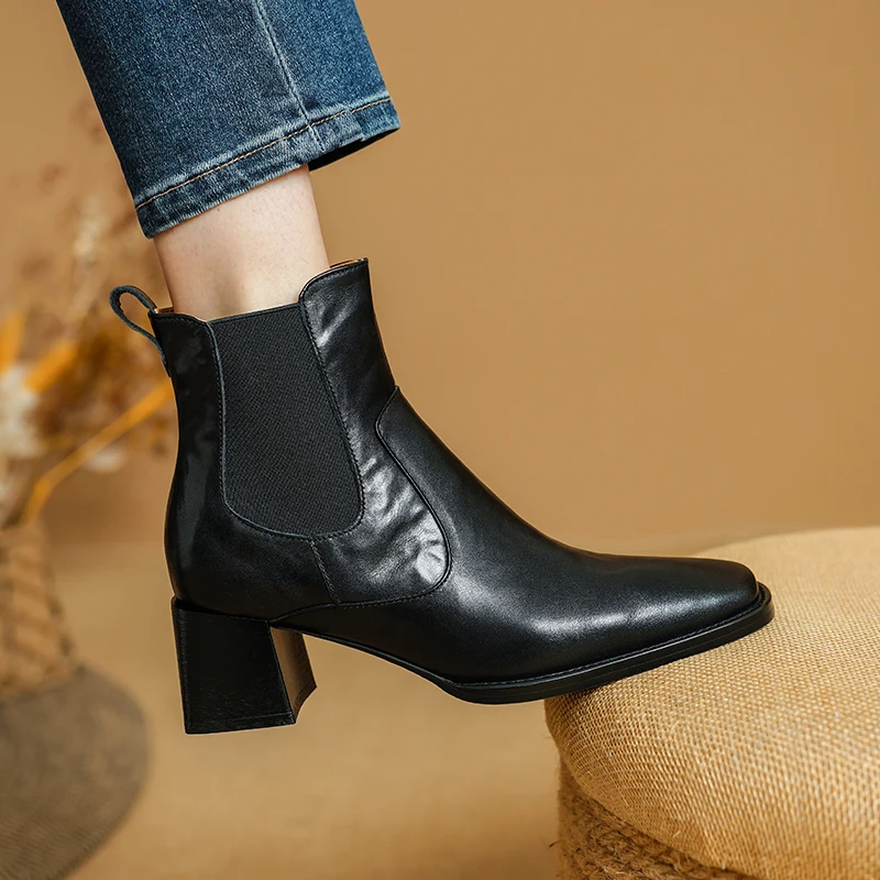 Elevate your style and comfort this winter with our stunning Ankle Boots with Elastic Side and Chunky Heel. Designed for both function and fashion, these boots are perfect for the modern individual who values quality craftsmanship and chic aesthetics. Crafted from premium genuine cow leather, they offer durability and timeless elegance, making them an essential addition to your wardrobe.