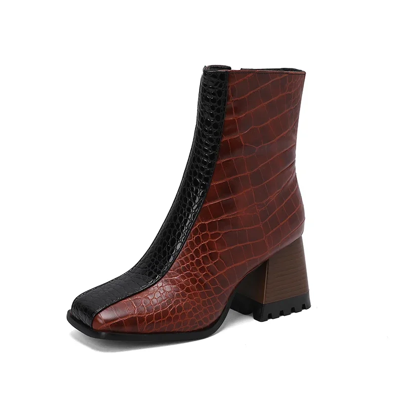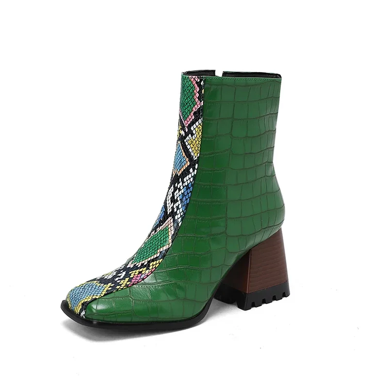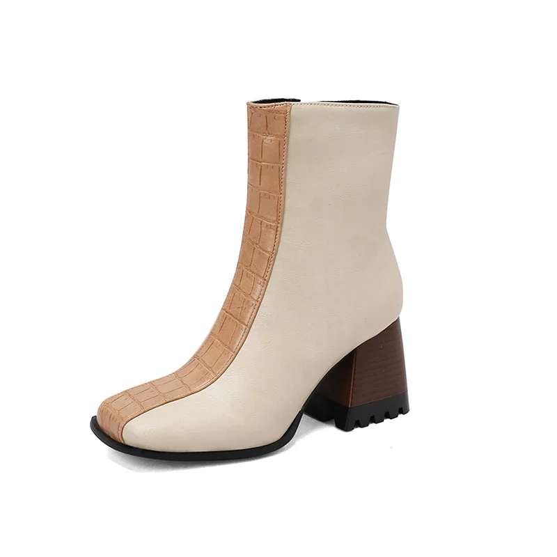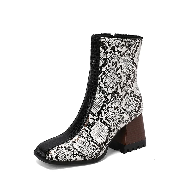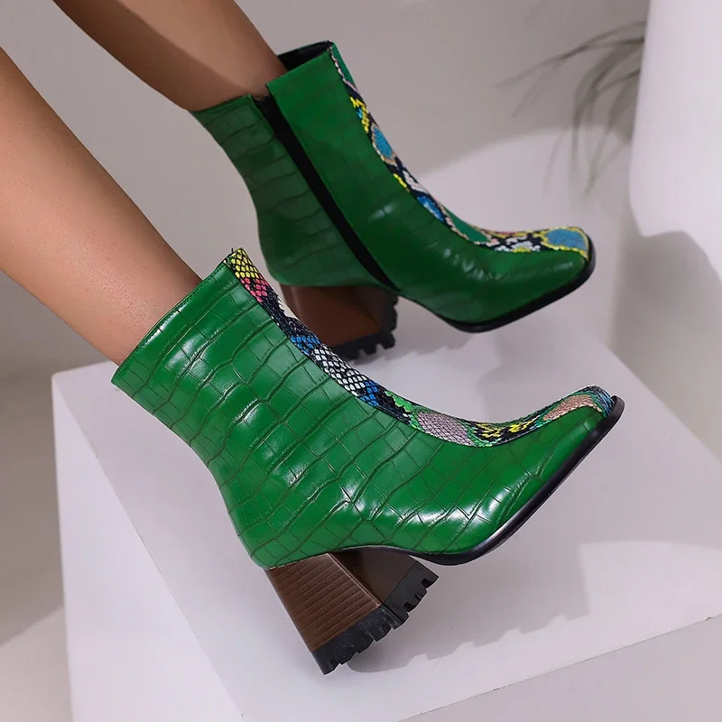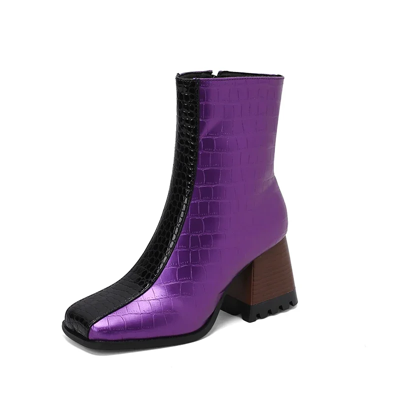 Elevate your winter wardrobe with these stunning Ankle Boots. Designed for both style and comfort, these boots feature a modern aesthetic that complements any outfit. The unique square toe design and practical back zip closure make them a fashionable choice for any occasion, from casual outings to more formal events. With their chic look and cozy interior, these boots are the perfect addition to your seasonal footwear collection.