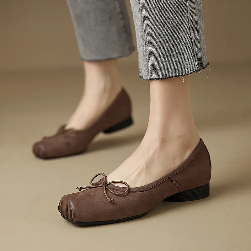 Step into a world of elegance with our Brown Ballet Flats with Bow. Crafted from high-quality genuine leather, these flats are designed to elevate your wardrobe while providing unparalleled comfort. Perfect for a day at the office or a casual outing, these shoes blend functionality with chic style. The refined design featuring a bow on the front and a square toe makes them an ideal choice for women seeking both comfort and sophistication.