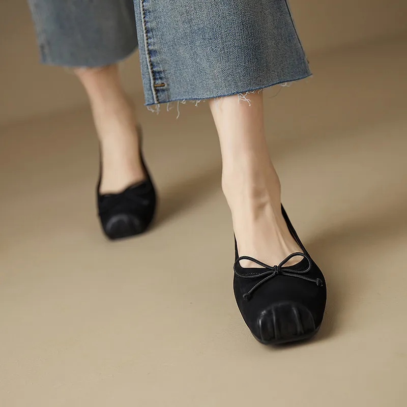 Elegant Brown Ballet Flats with Bow – Comfort and Style