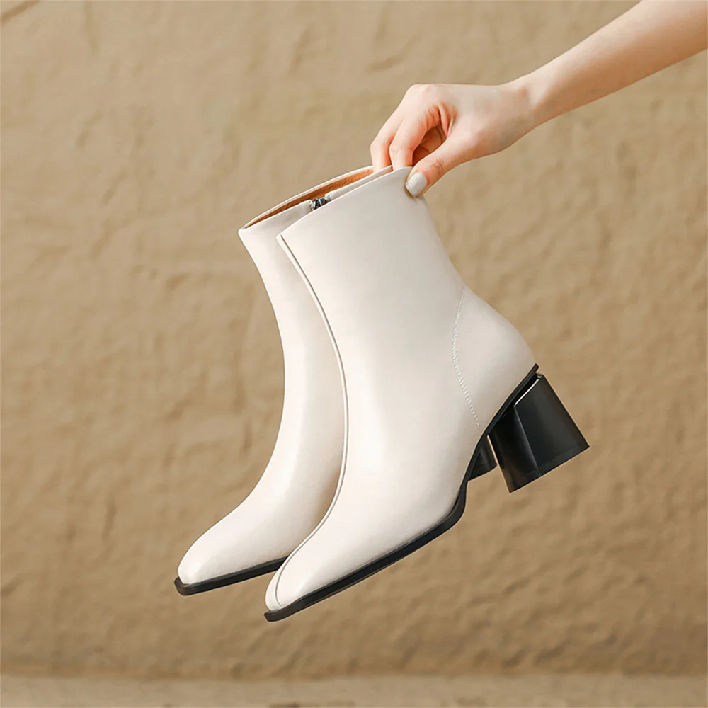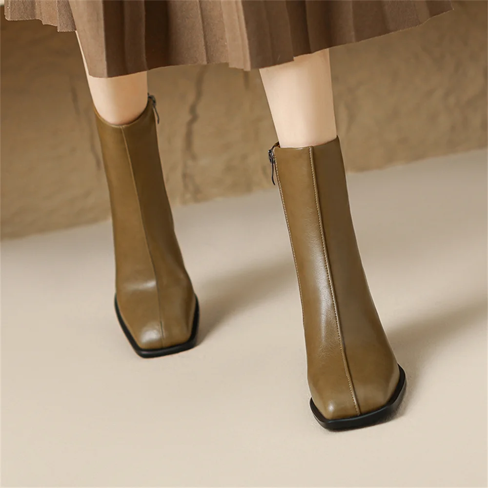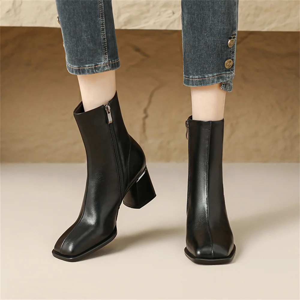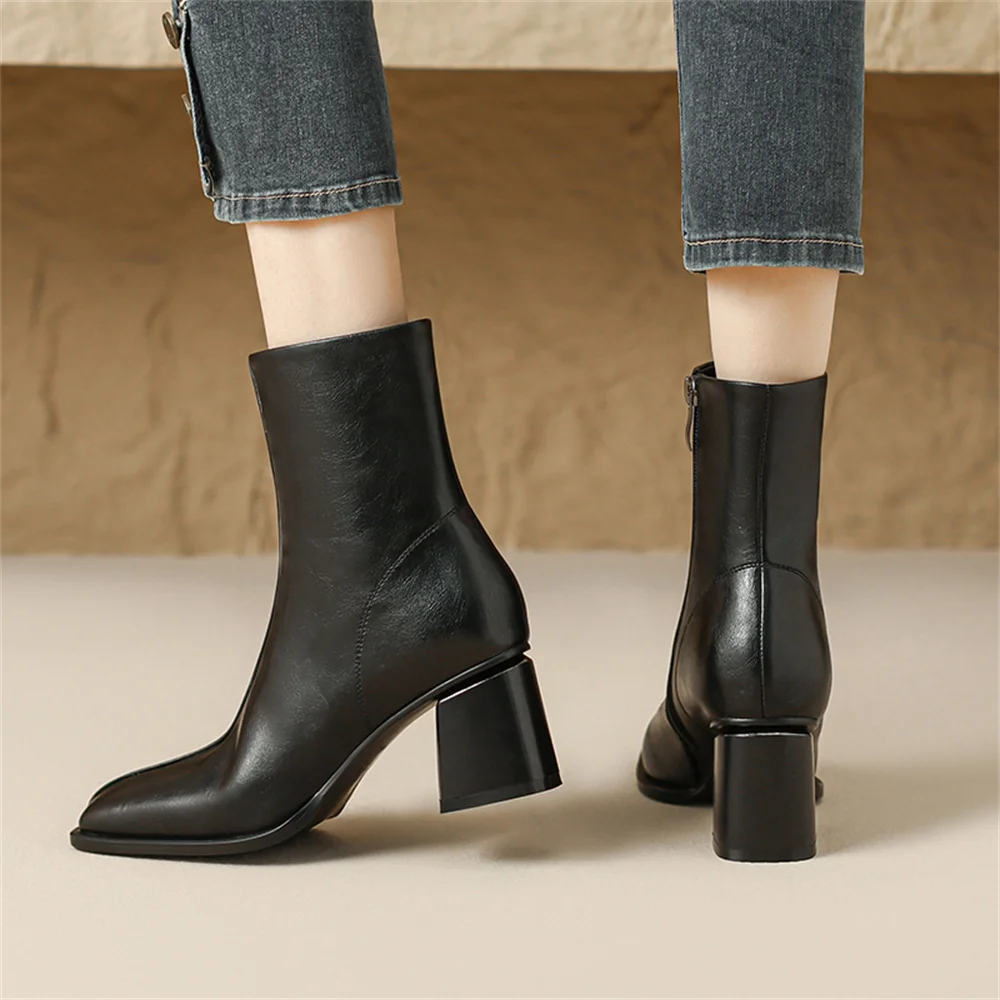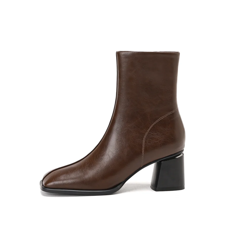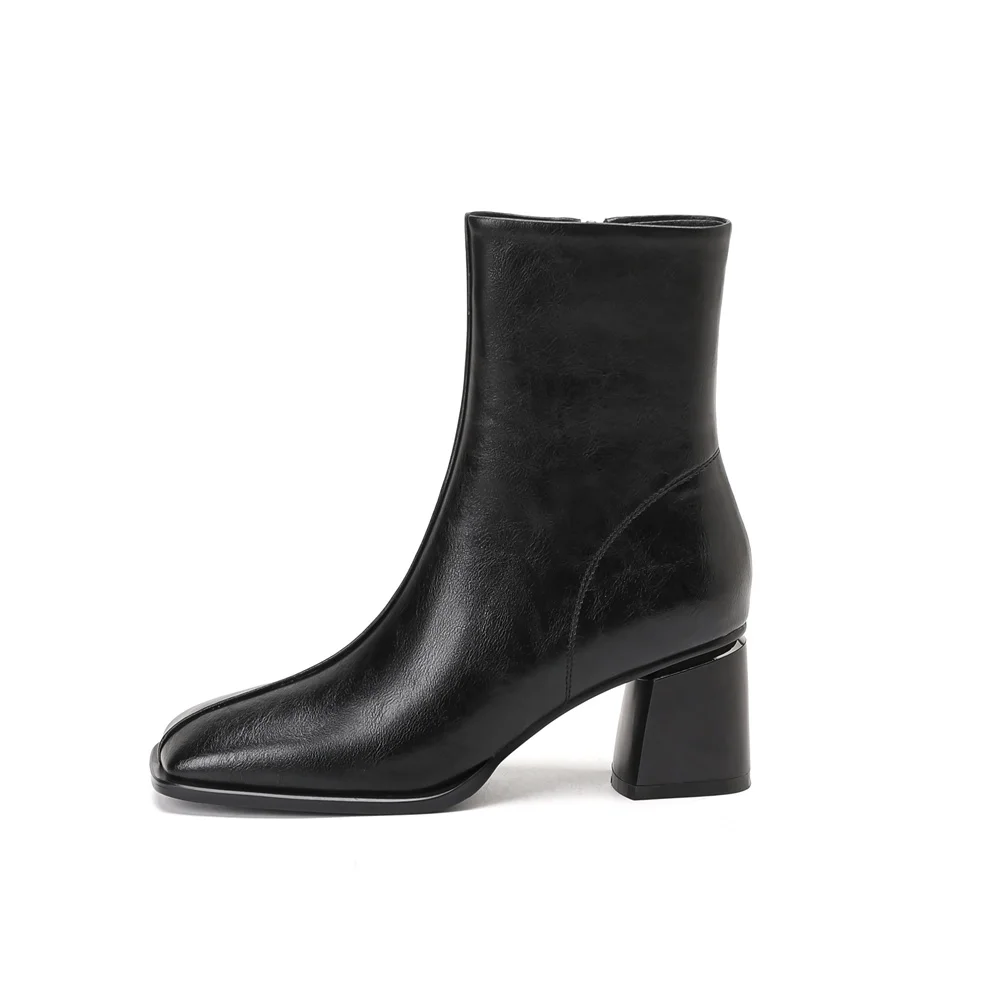 Elevate your footwear collection with our stunning Basic Ankle Boots, designed to blend comfort and contemporary style effortlessly. These boots feature a striking thick high heel and a chic square toe, making them the ideal choice for any occasion, from casual outings to formal events. Crafted from premium genuine cow leather, these boots promise not only durability but also a luxurious feel that you will love!