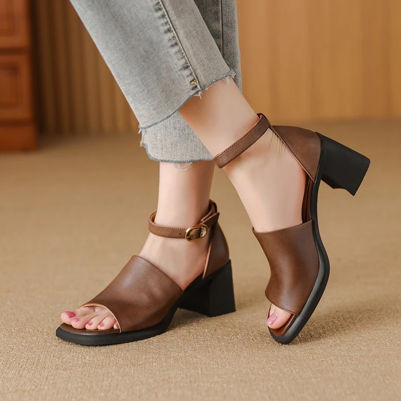 Yes, the combination of genuine leather and a chunky heel provides comfort for all-day wear. - Are these sandals suitable for formal occasions?