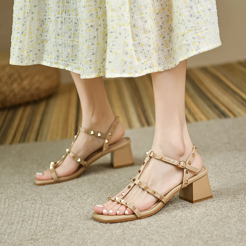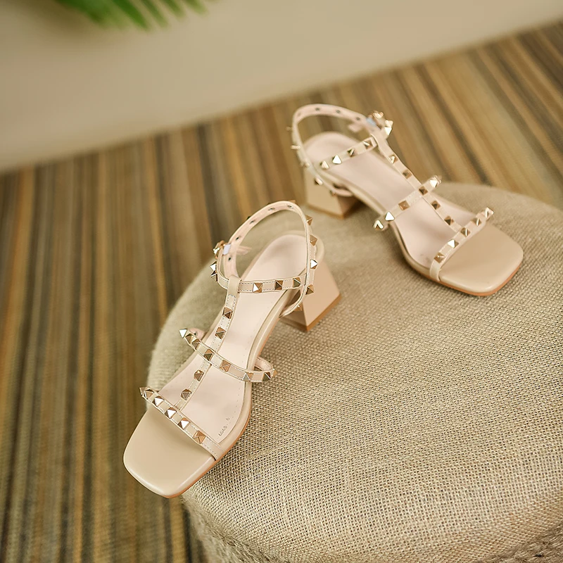 Step into Style with Our Beige Open Toe Rivet Sandals