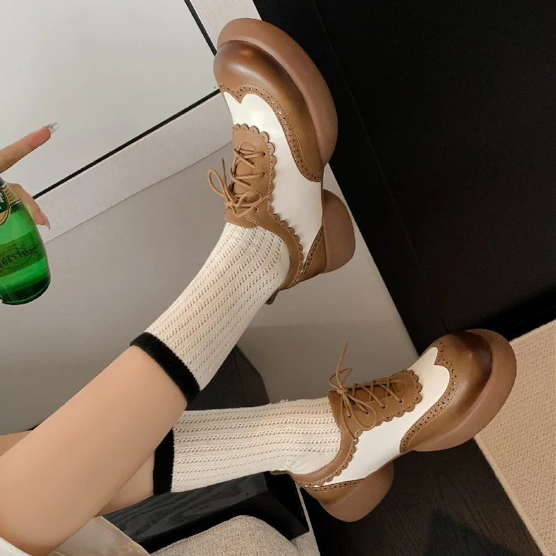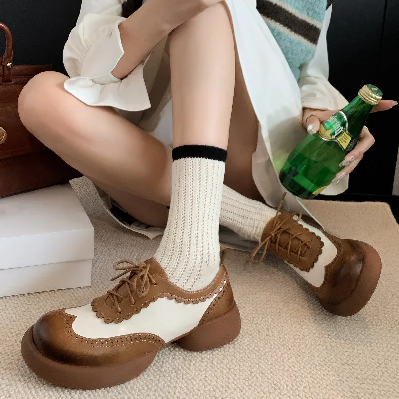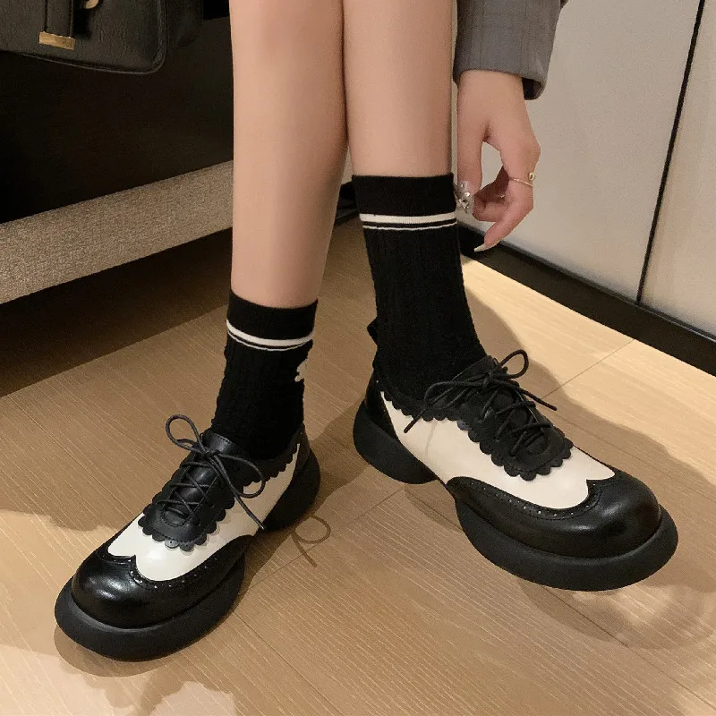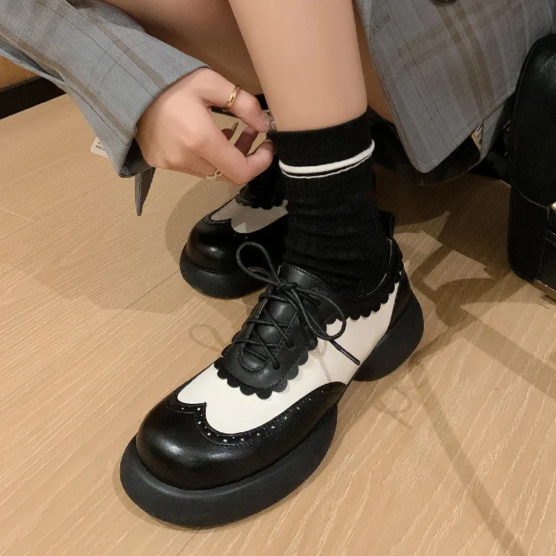 Step into a world of sophistication with our Black and White Oxford Shoes. Crafted from high-quality genuine leather, these shoes are not just a fashion statement; they are designed for comfort and versatility. Perfect for the spring and summer seasons, these shoes feature a unique design that combines color blocking with delicate ruffles, adding a whimsical touch to any outfit. Whether you are a student, a cosplayer, or simply someone looking to enhance their wardrobe with a retro flair, these shoes seamlessly blend style with practicality.
