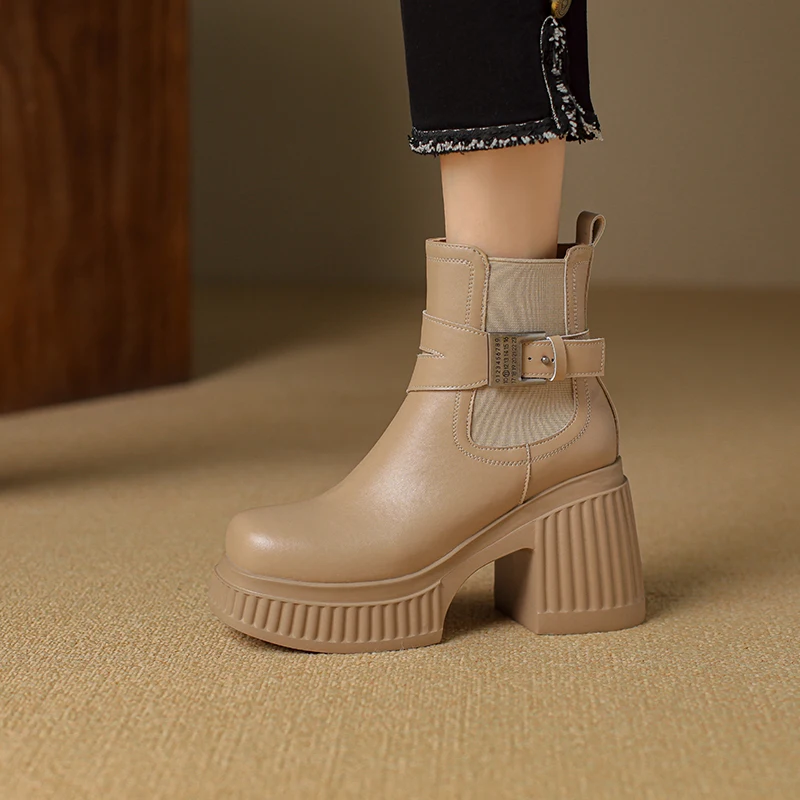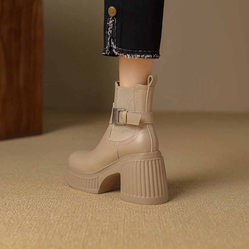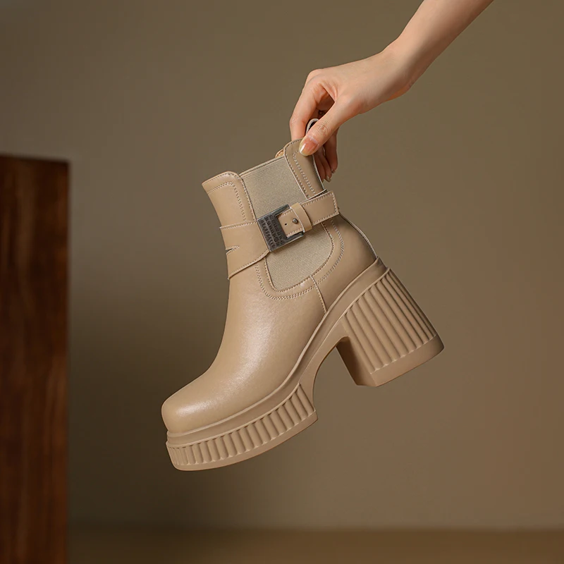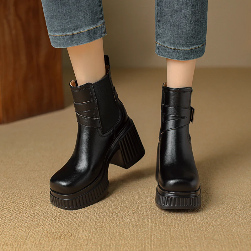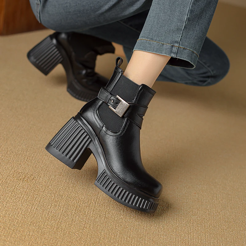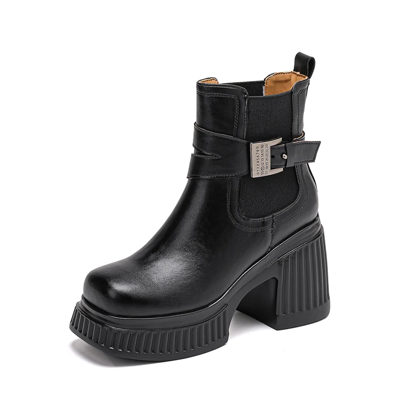 Discover the Stylish and Comfortable Black Platform Ankle Boots with Metal Buckle