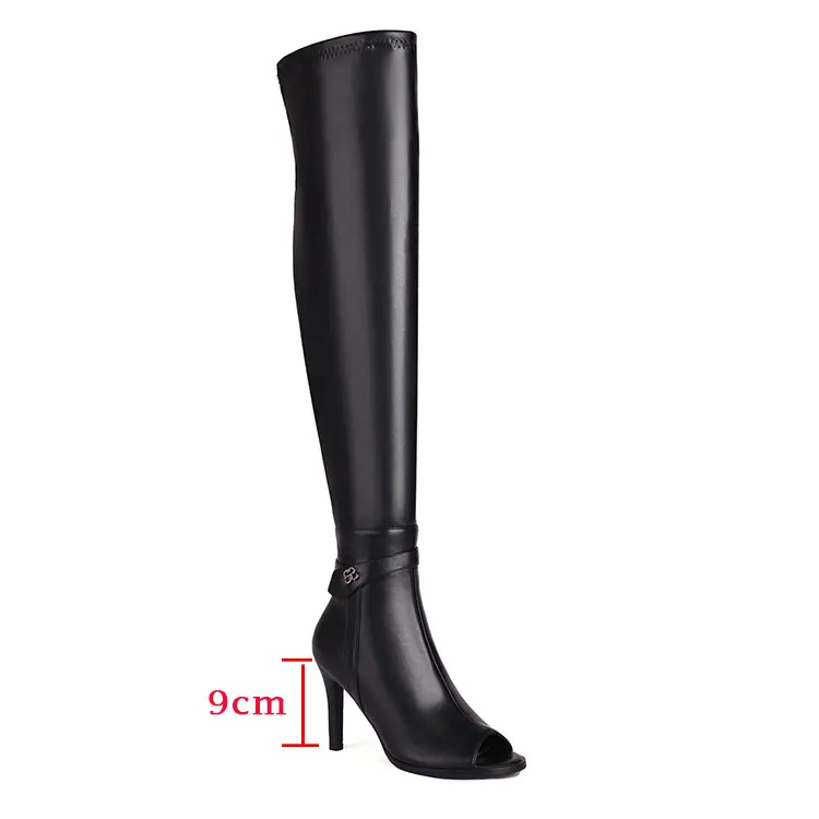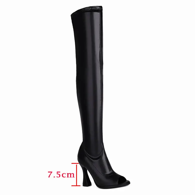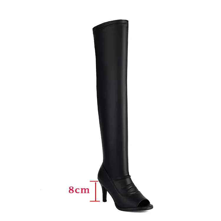 Black stretch peep toe thigh high zipper boots