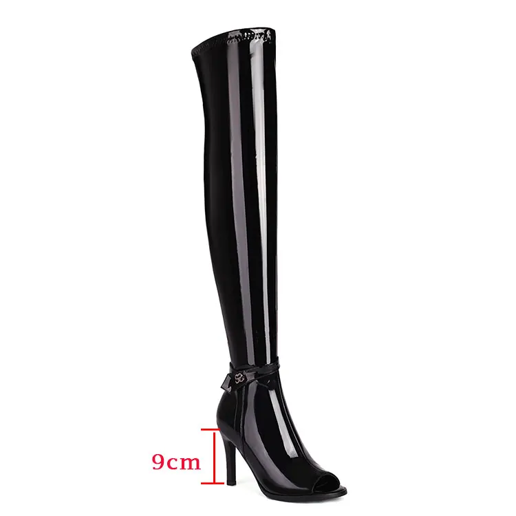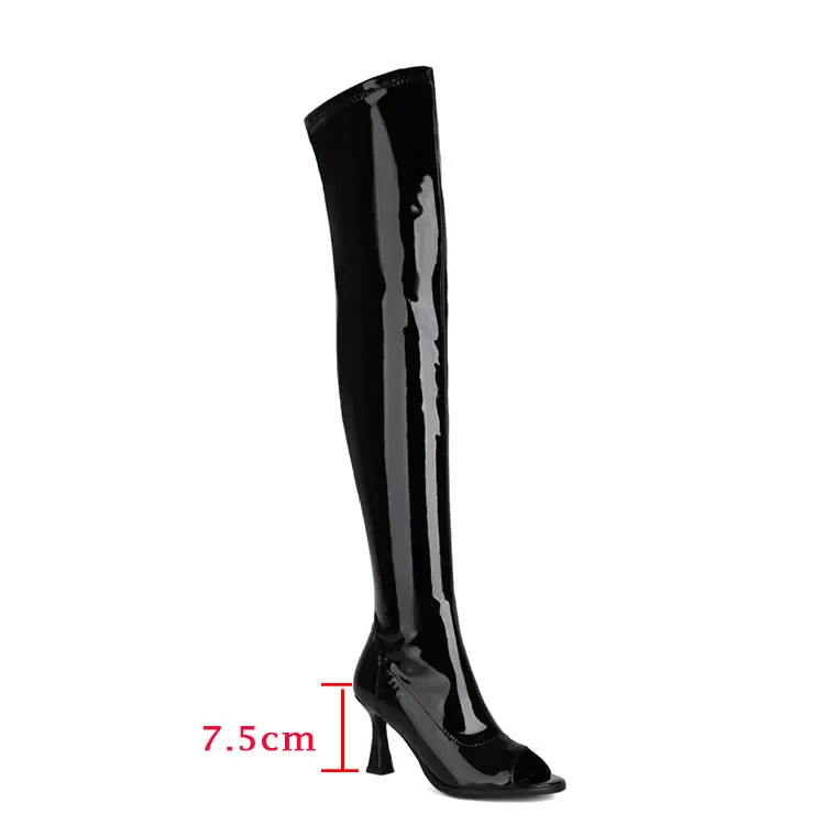 Introducing the Stunning Black Stretch Peep Toe Thigh High Zipper Boots