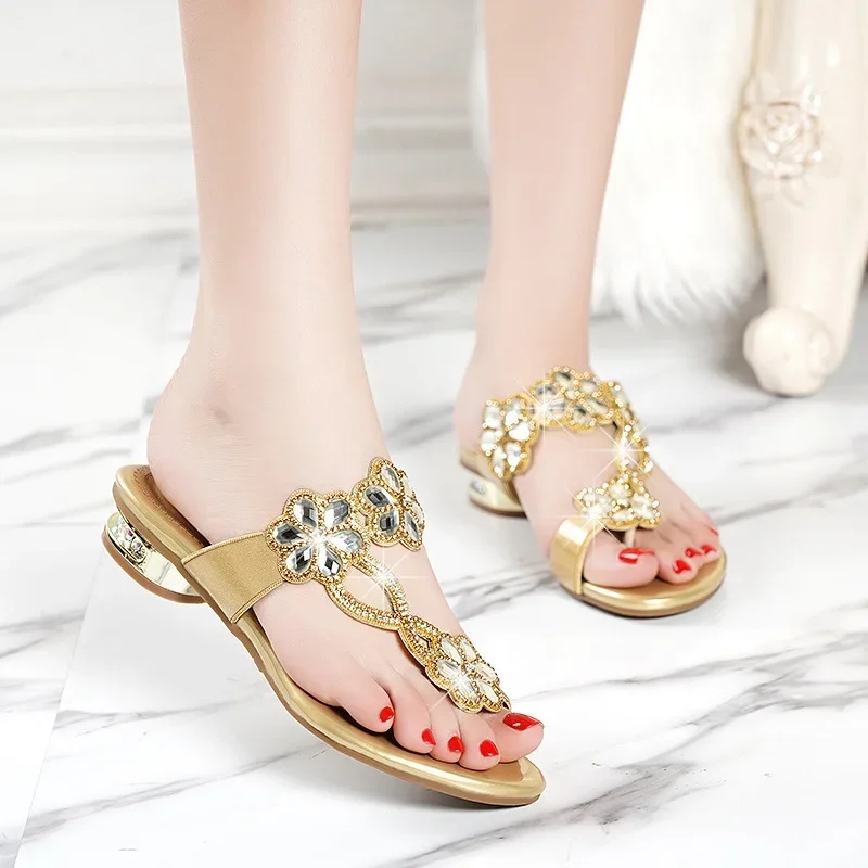 Bohemian rhinestone gladiator slip-on beach flip flops