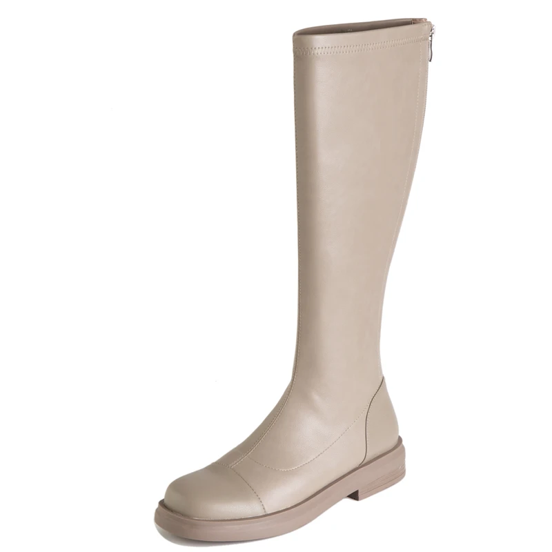 The White High Knee Flat Heel Boots are the epitome of modern elegance and comfort. Designed for women who seek a chic look while remaining comfortable, these boots are perfect for any occasion, whether it’s a day at work or a night out in the city. Crafted from high-quality leather with stretch fabric for a perfect fit, they also feature a non-slip sole to ensure maximum safety.