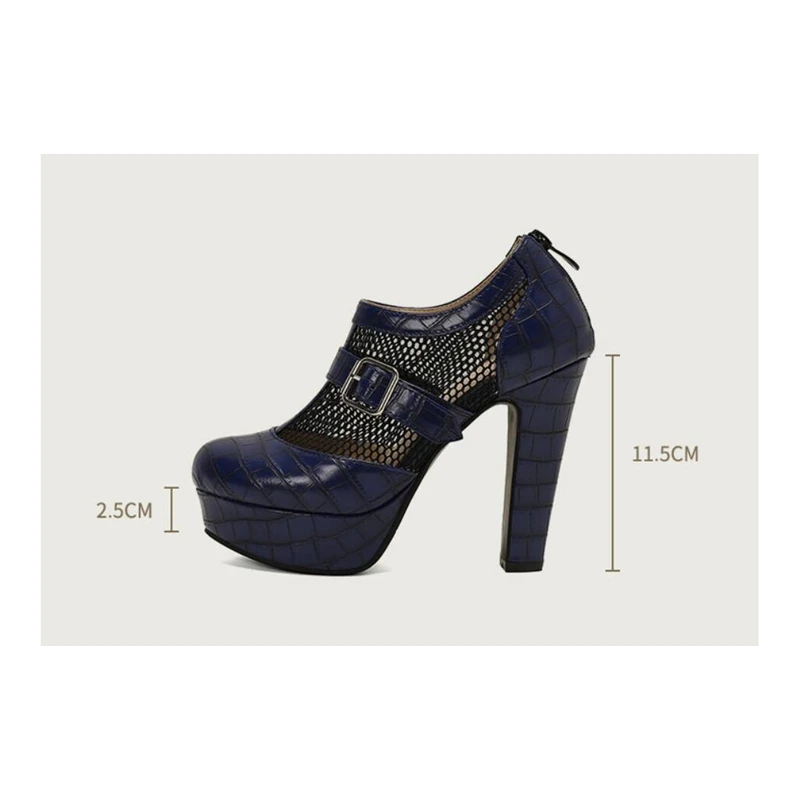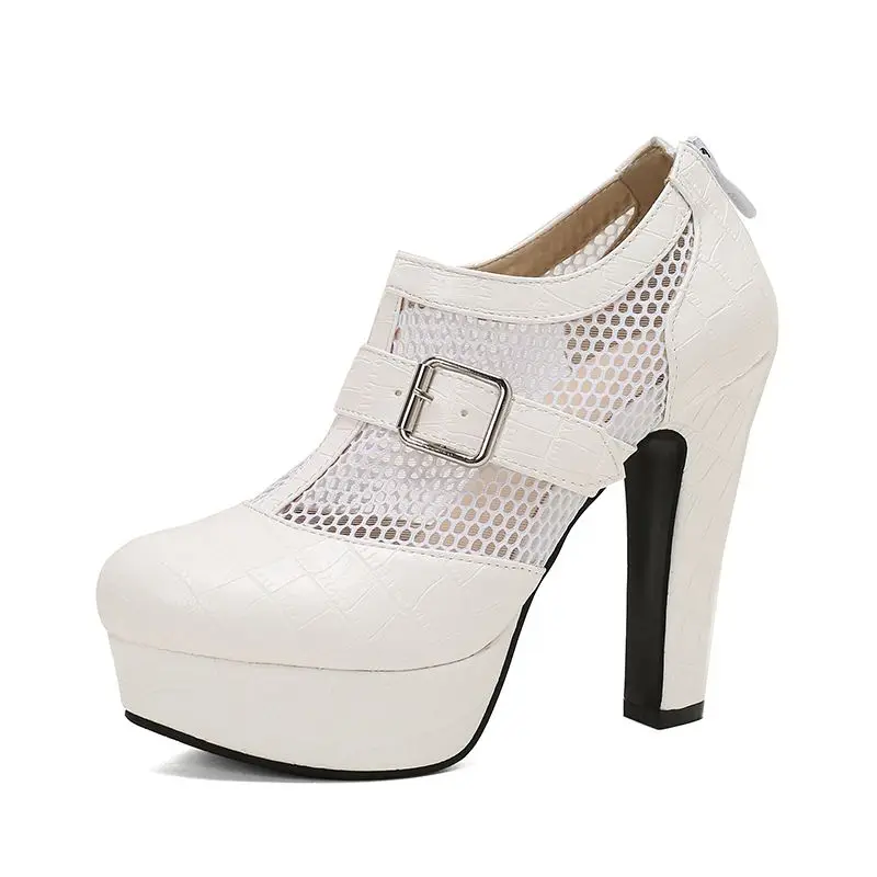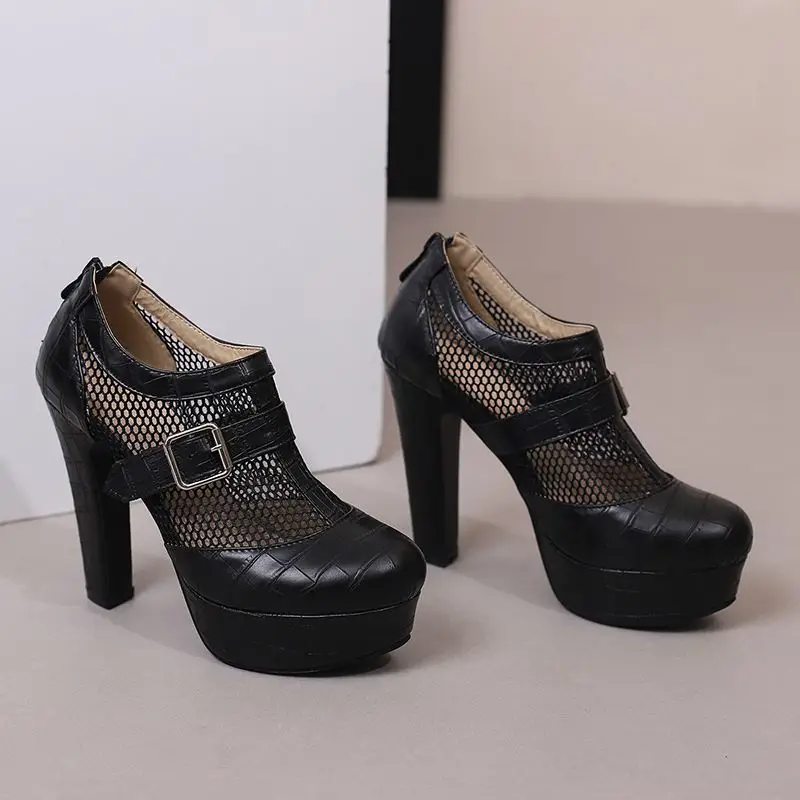 Breathable mesh high heels with buckles and platform