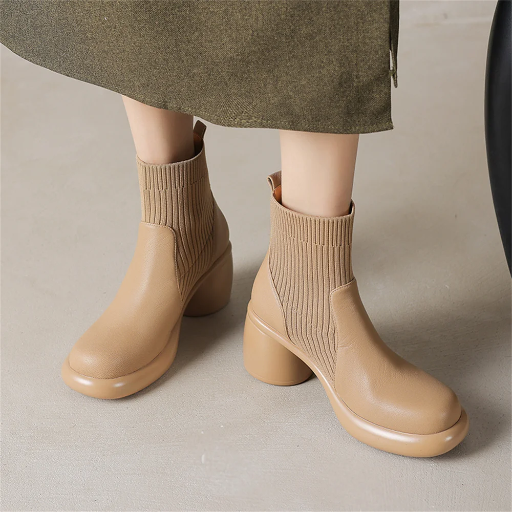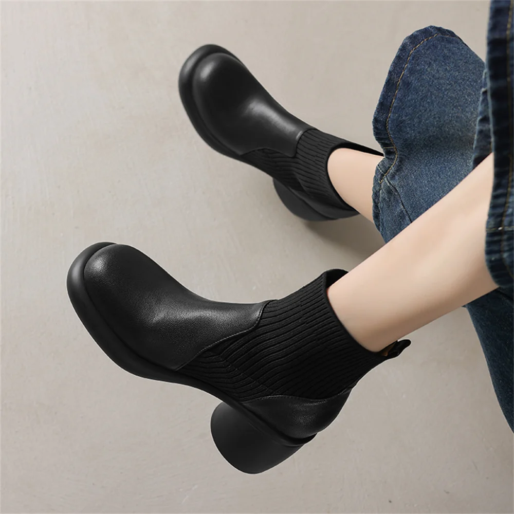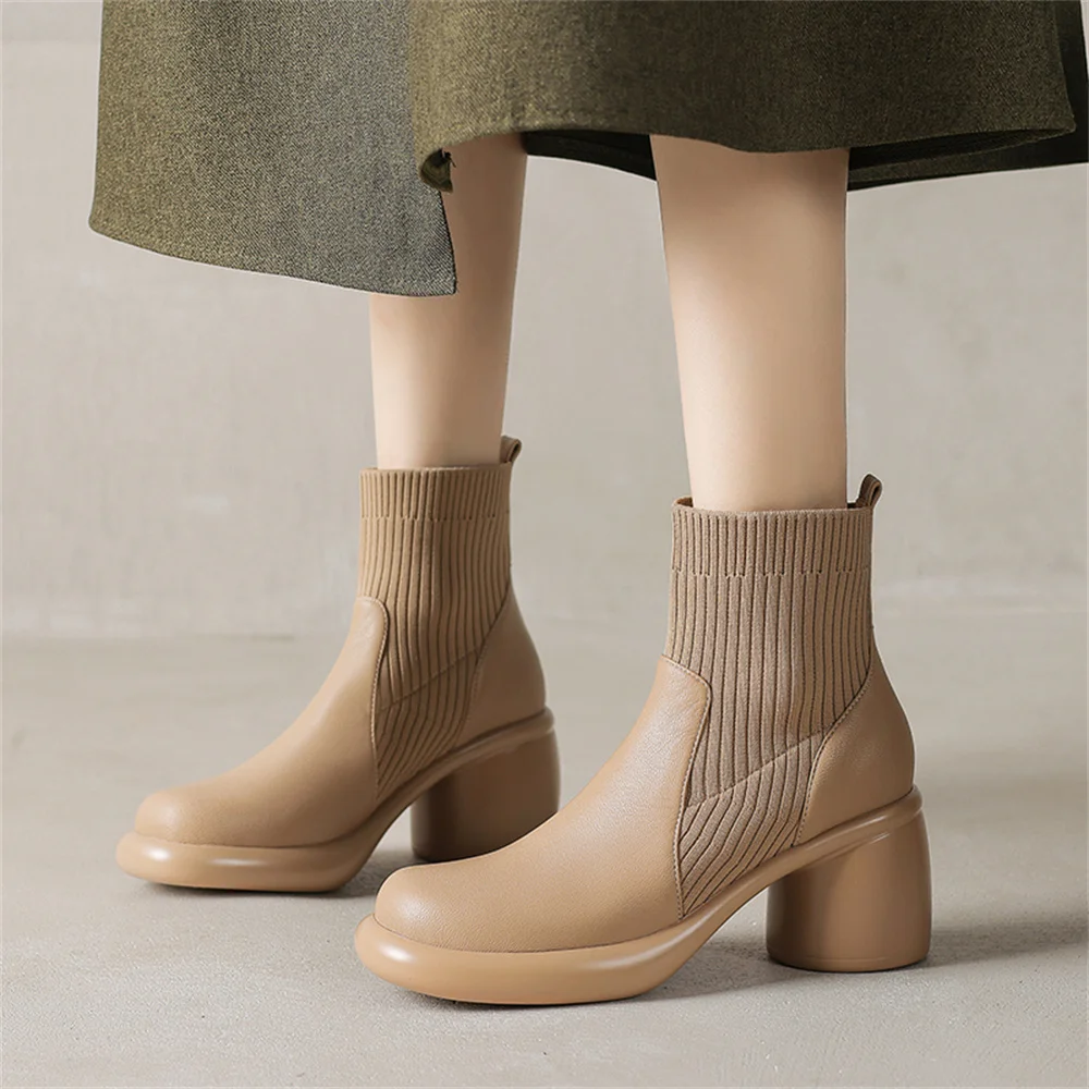 Step into sophistication with our British Style Platform Ankle Boots featuring integrated socks. Crafted for the modern individual, these boots seamlessly blend comfort, style, and functionality. With their chic design and high-quality materials, they are the perfect addition to your wardrobe for the spring and autumn seasons.
