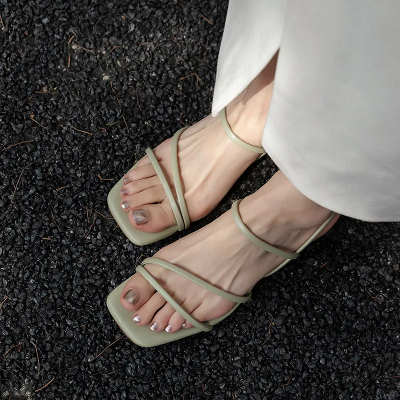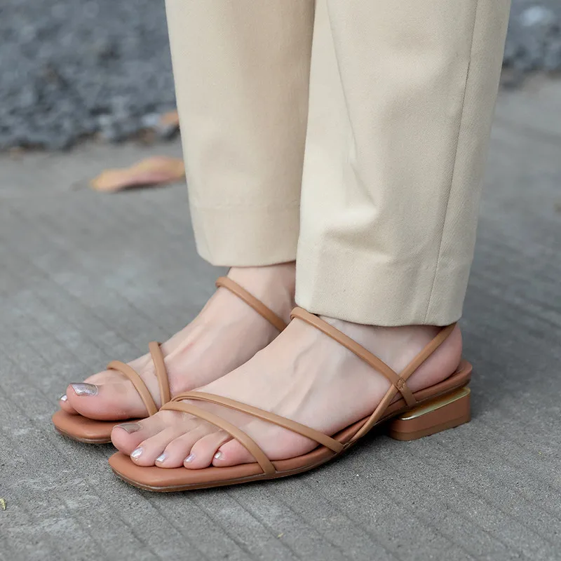 - Style: Strappy sandals with narrow bands