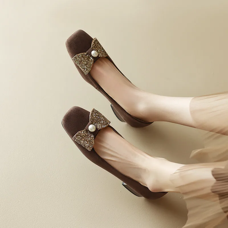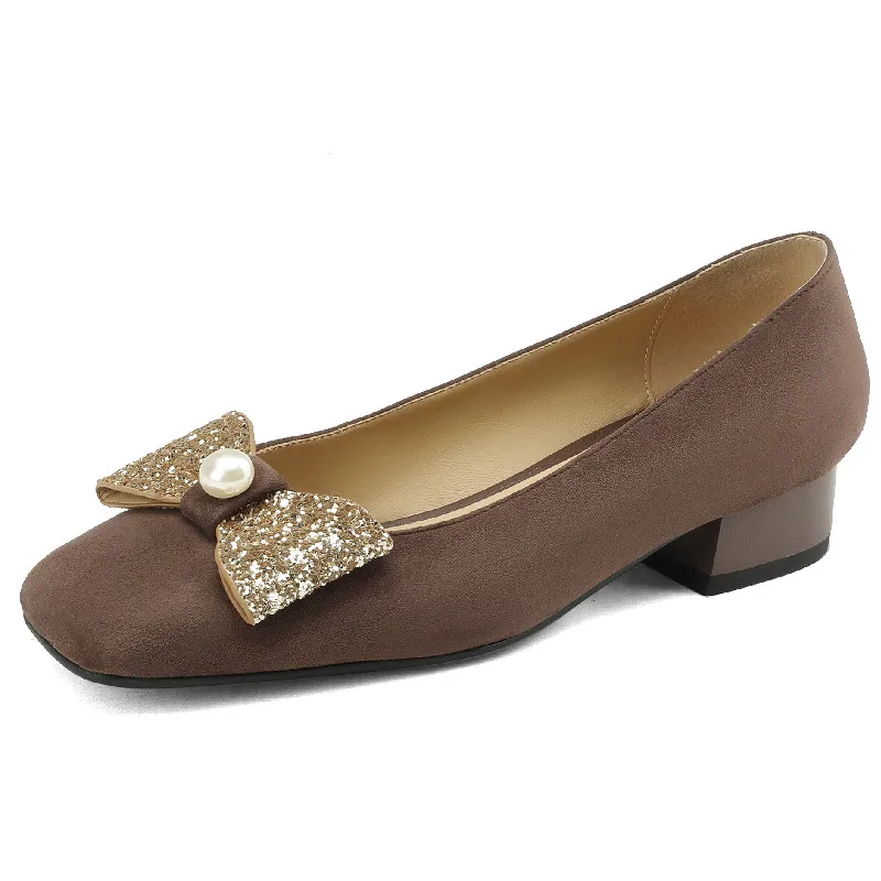 Introducing the Elegant Butterfly Knot Square Toe Low Heels Pumps