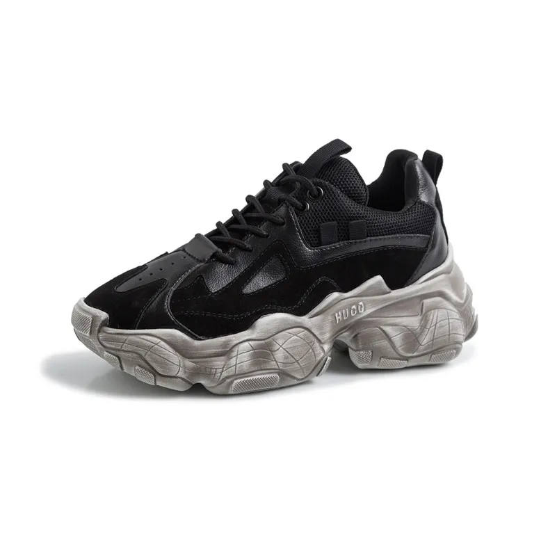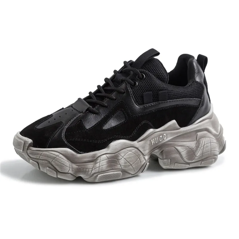 Casual lace-up leather sneakers for women