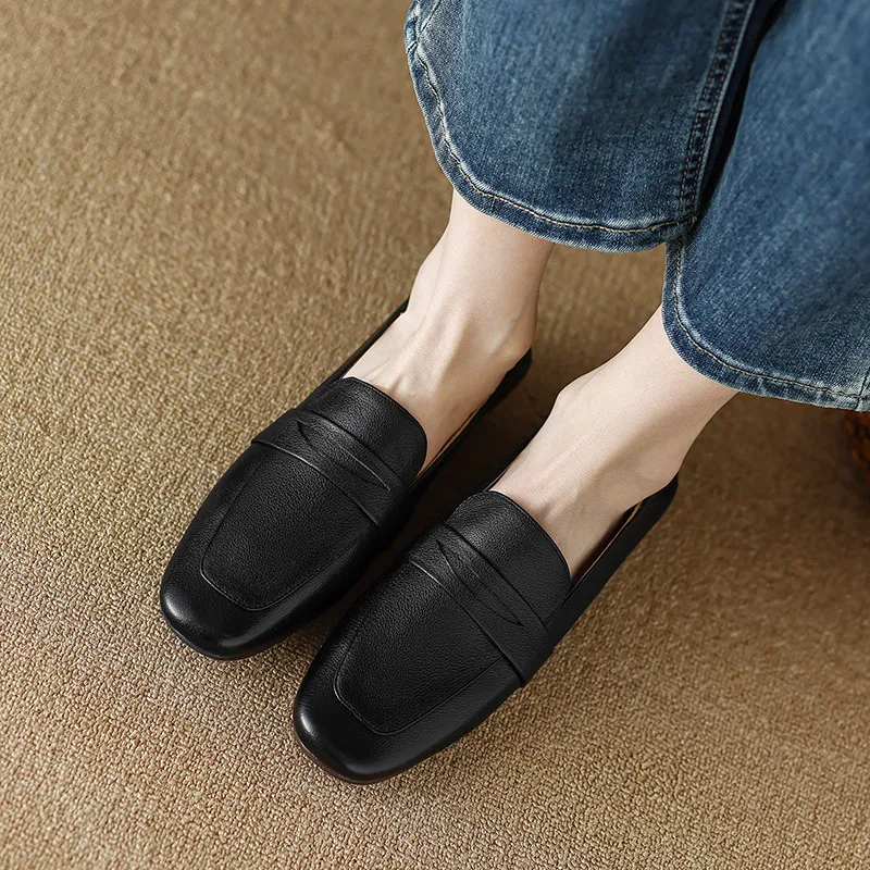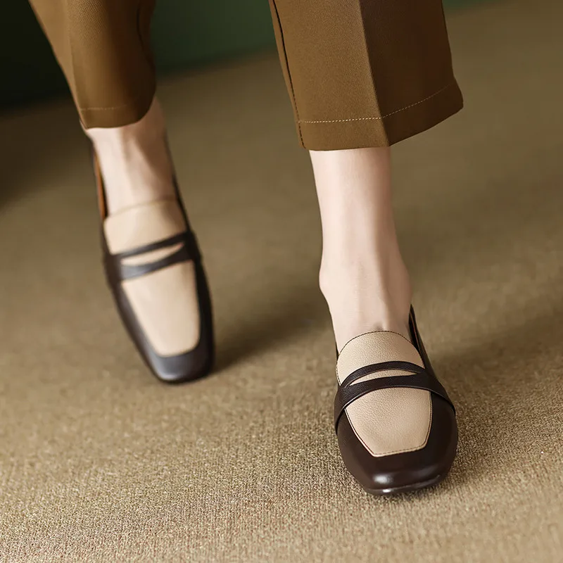 Casual leather low heels loafers in mixed colors