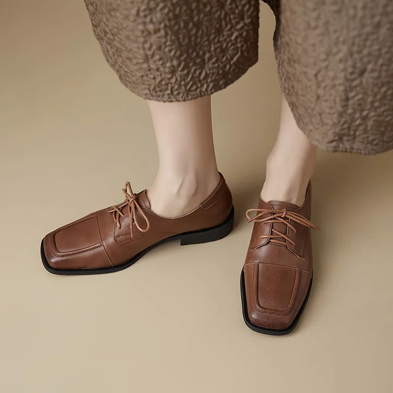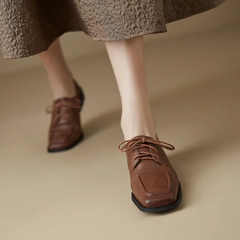 Elevate your footwear collection with these genuine leather lace-up shoes, featuring a classic and retro design that effortlessly blends style with comfort. Ideal for everyday wear, whether at the office or during casual outings, these shoes provide lasting comfort and a timeless look. Their meticulous craftsmanship and superior quality make them a perfect choice for modern, elegant women.