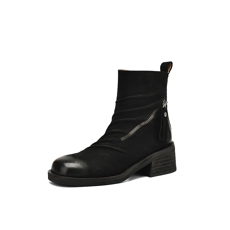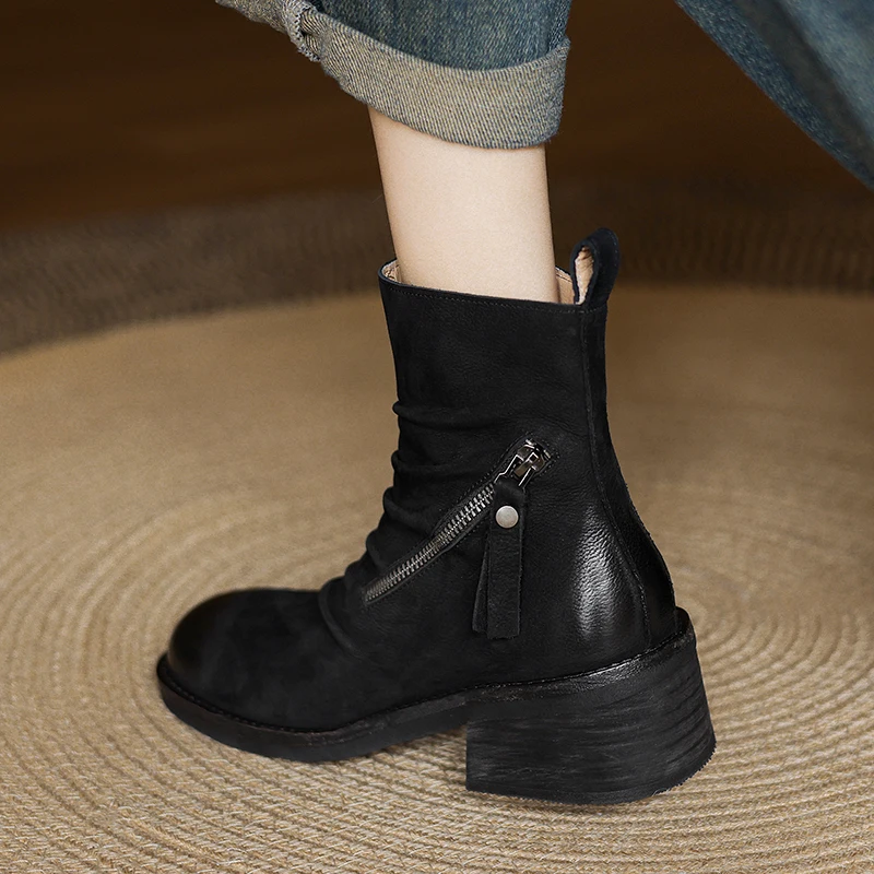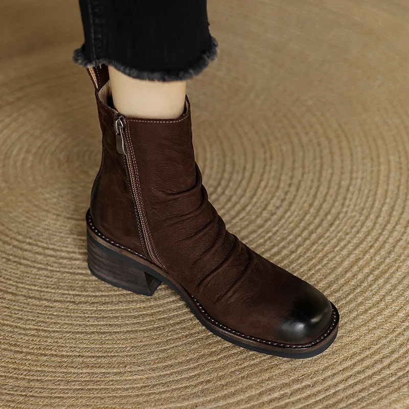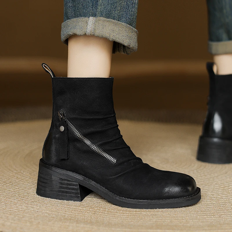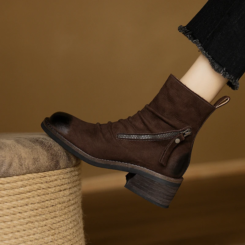 Step into style and comfort with our Chunky Heel Ankle Boots, crafted from premium genuine cow leather. Designed to provide maximum support and stability, these boots are perfect for both casual outings and more formal occasions. The retro style combined with modern functionality makes them a must-have addition to any wardrobe.