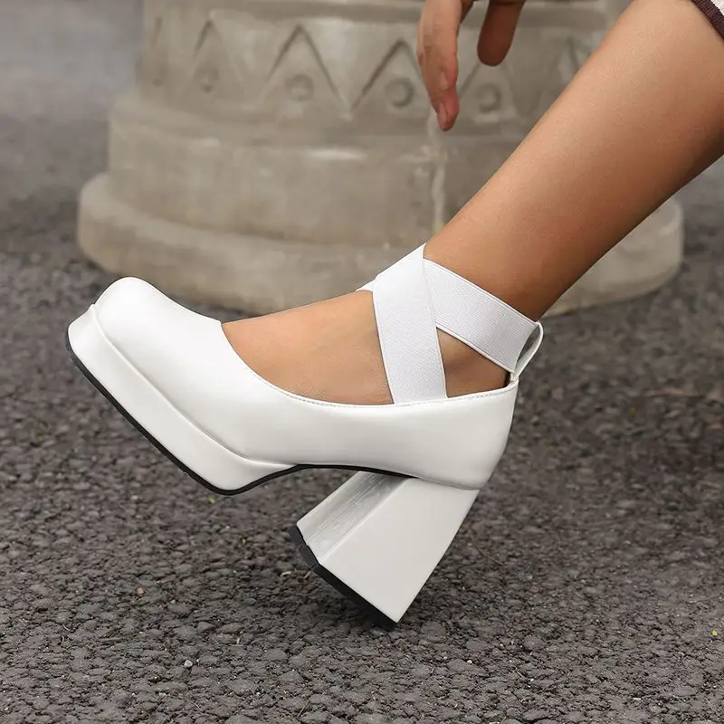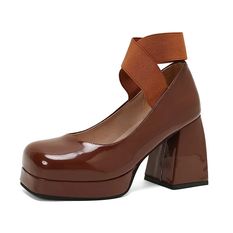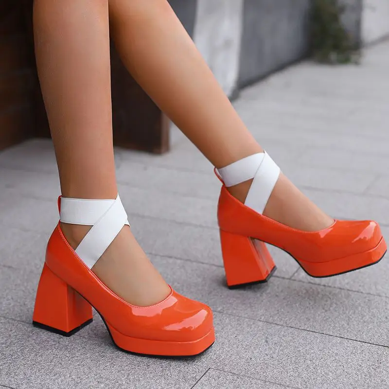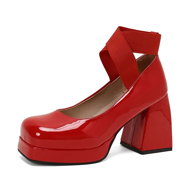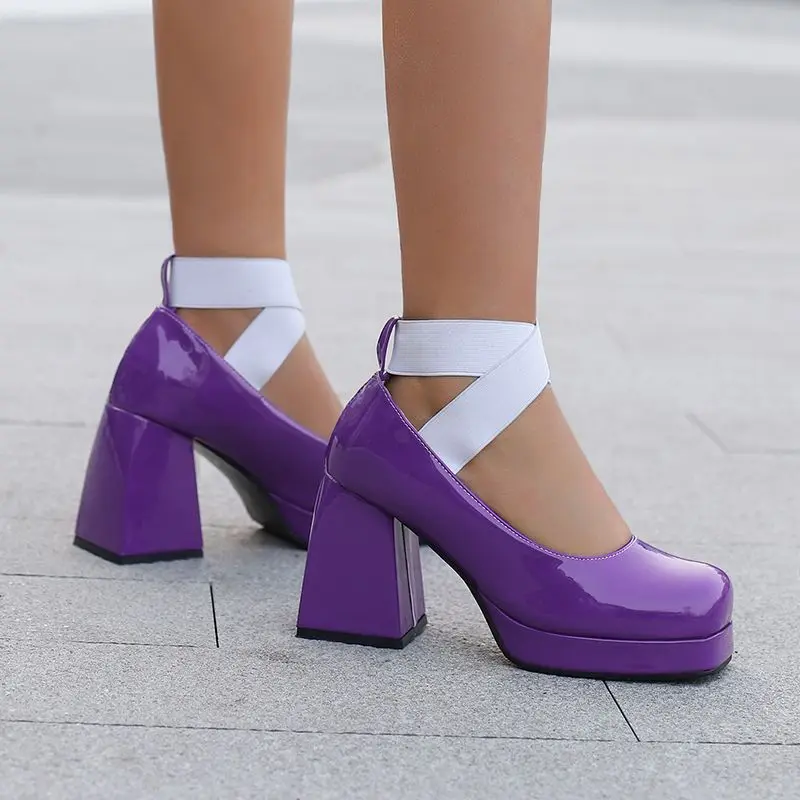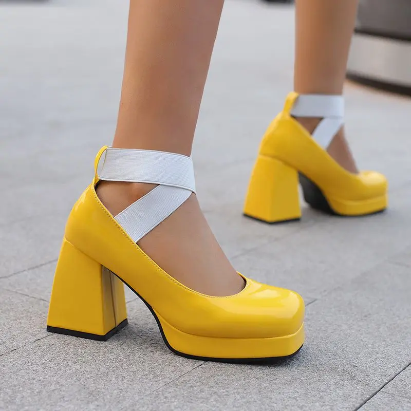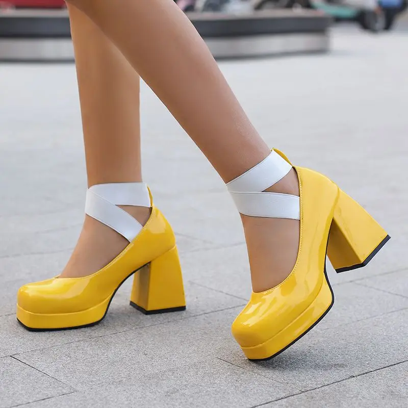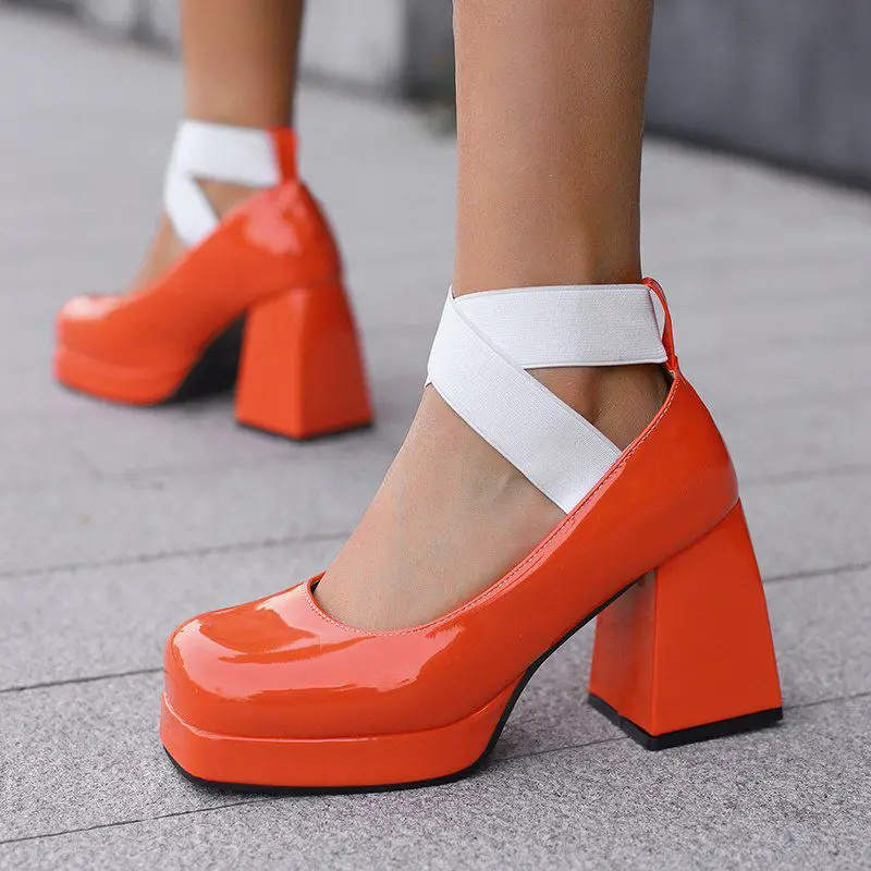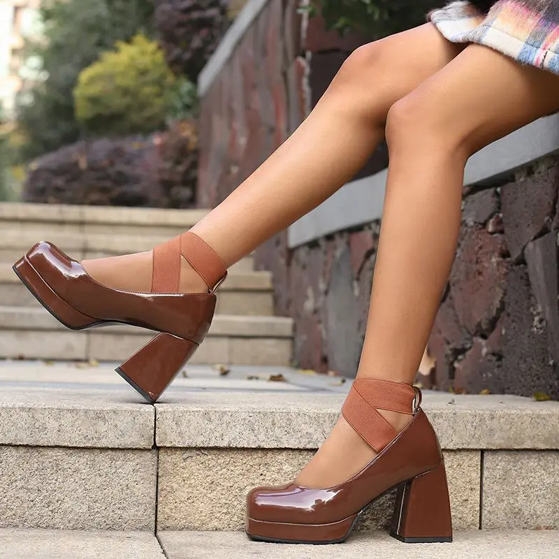 Discover the Elegance of Chunky High Heel T-Strap Platform Pumps
