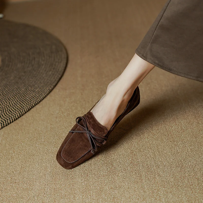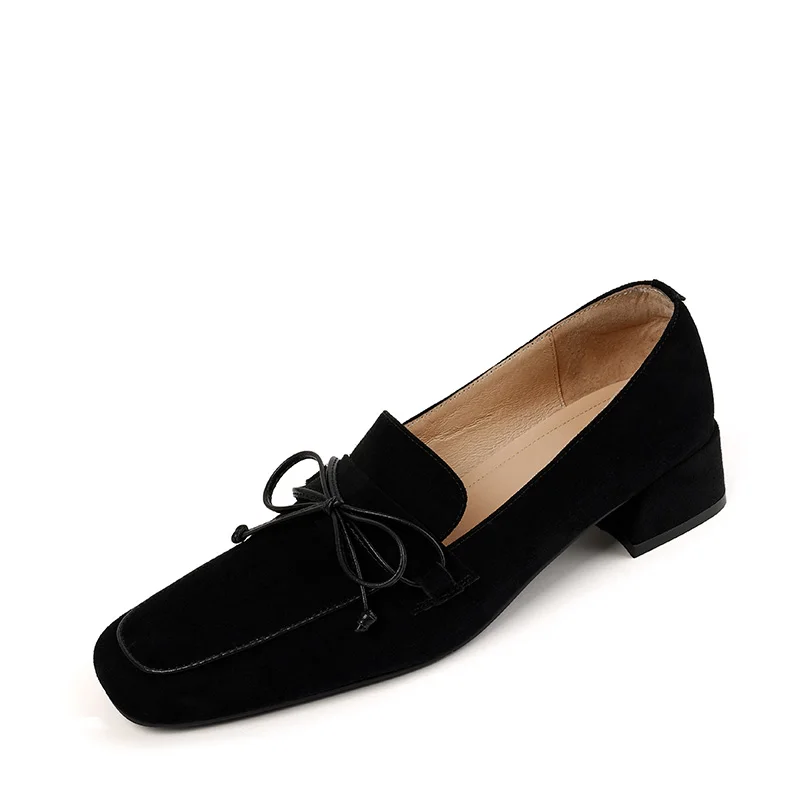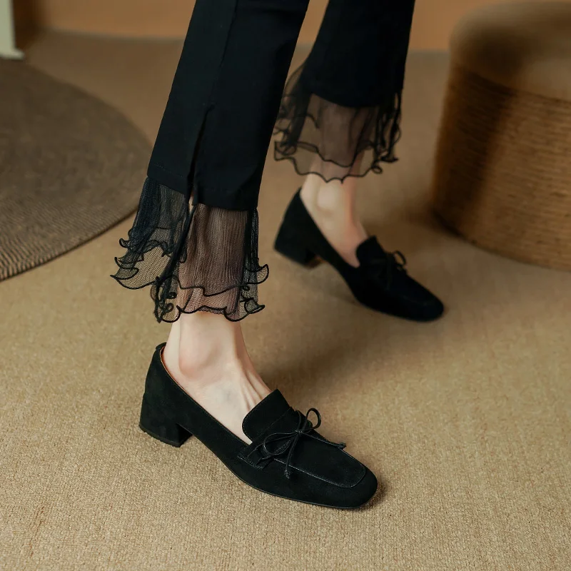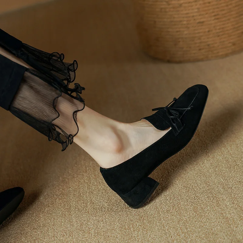 Classic square toe high heel pumps in genuine leather suede