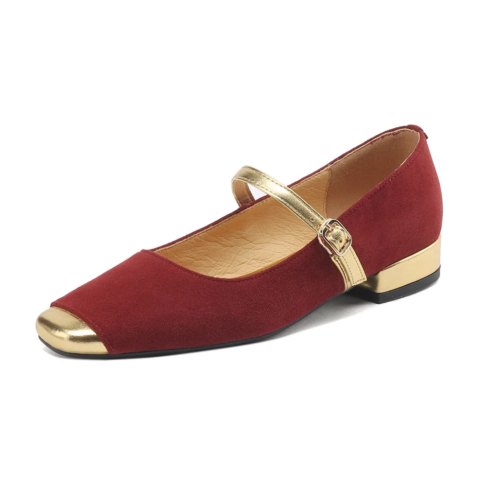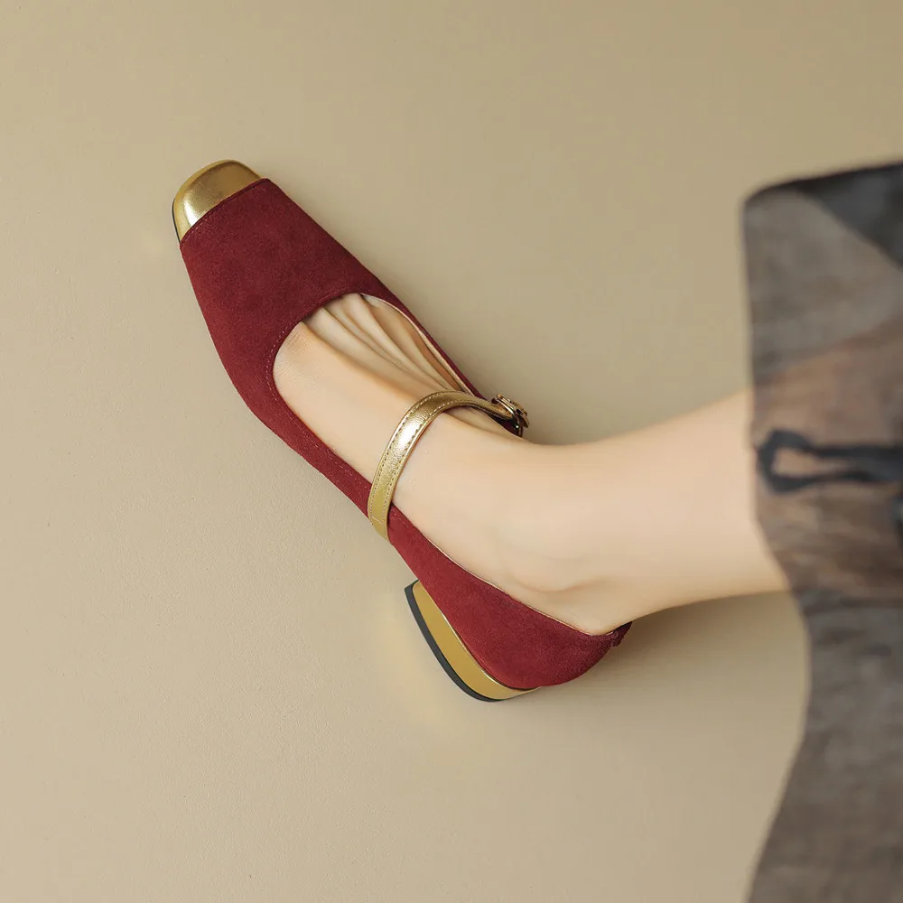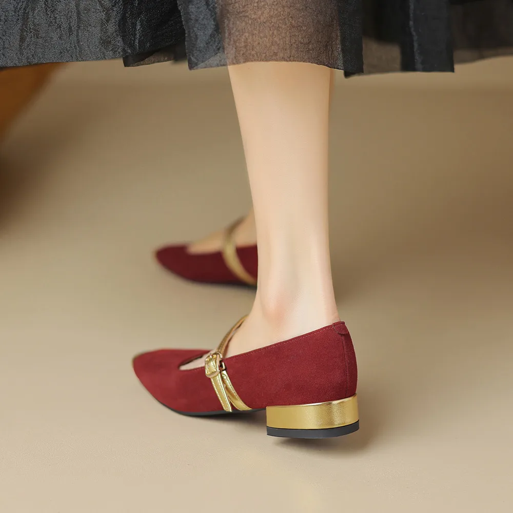 Step into Style with the Colorful Low Heel Buckle Strap Leather Pumps