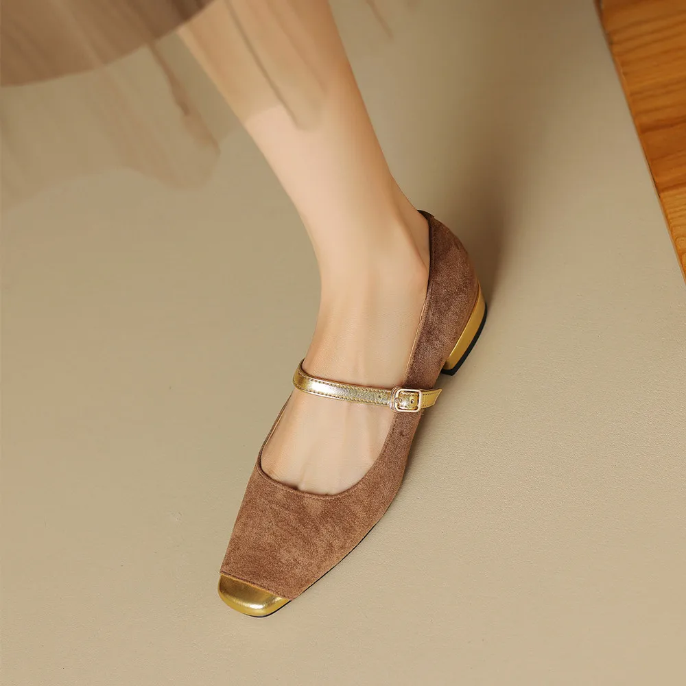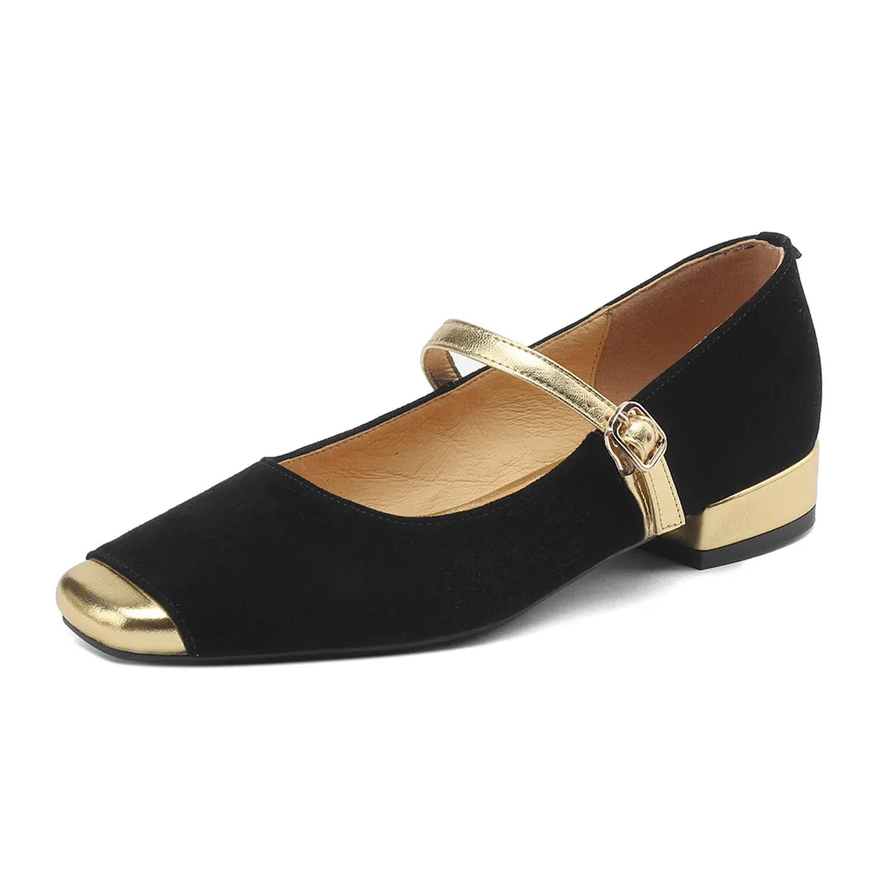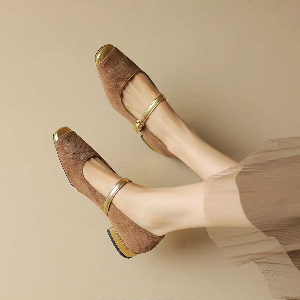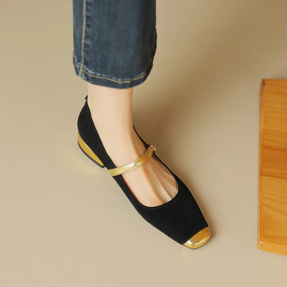 Step into Style with the Colorful Low Heel Buckle Strap Leather Pumps