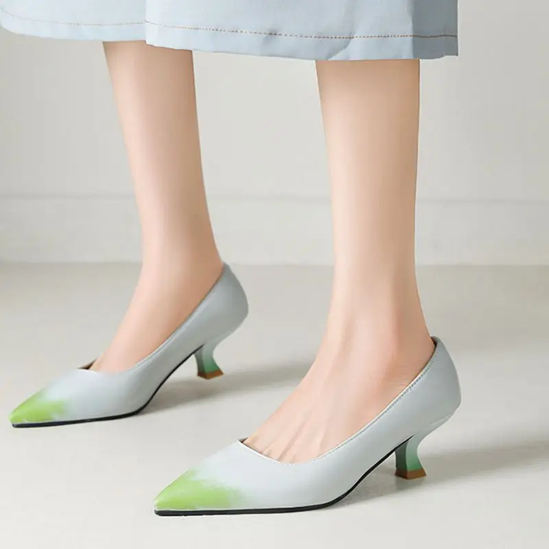 Step into elegance and style with our Colorful Pointed Toe Slip-On Pumps. Designed to elevate your outfit, these chic pumps are perfect for office wear or any formal occasion. The striking mix of colors and the unique pointed toe create a fashionable silhouette that is sure to make a statement. With a comfortable small heel height, these pumps provide the perfect balance of style and comfort, making them a must-have addition to your shoe collection.