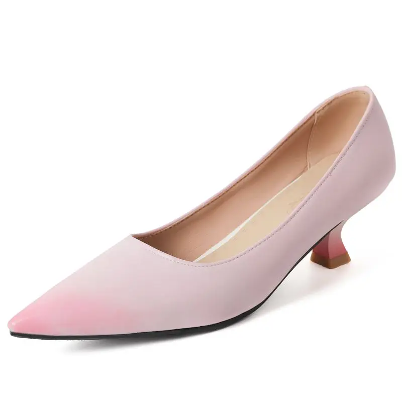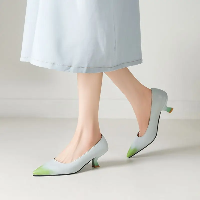 Colorful Pointed Toe Slip-On Pumps with Small Heel