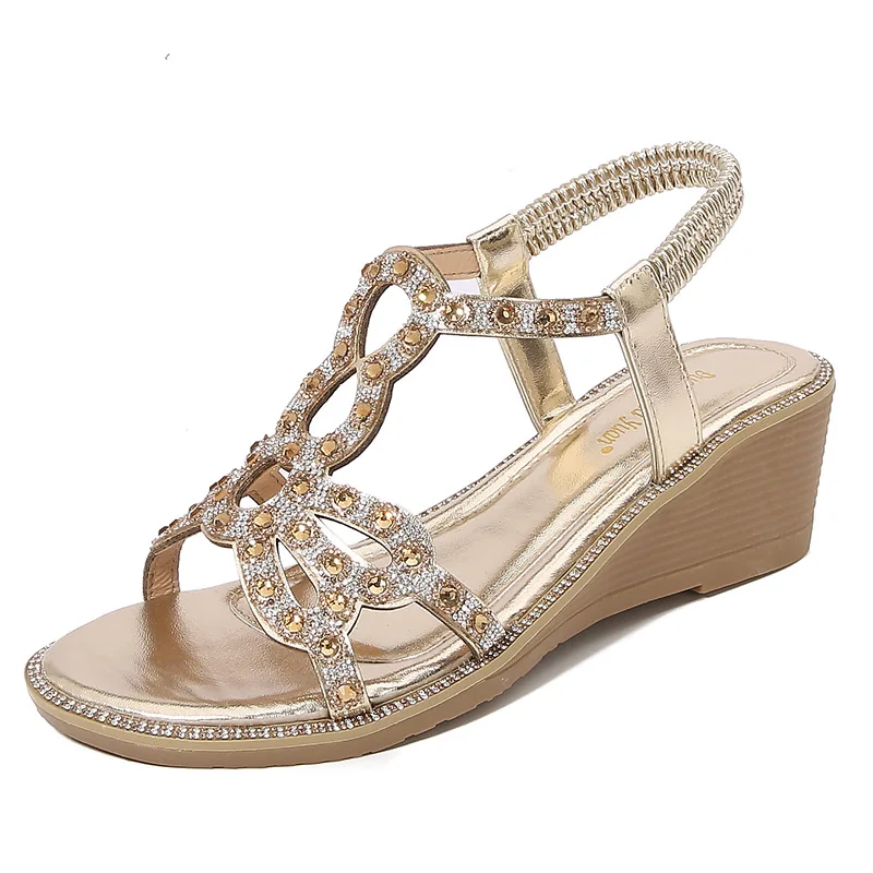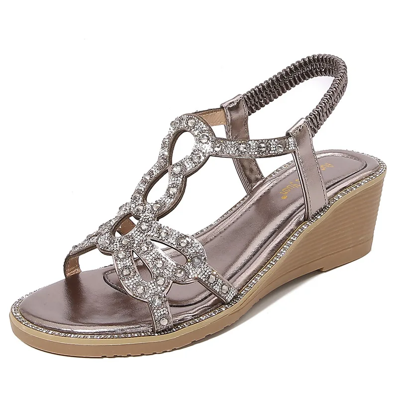 Comfortable platform wedge sandals with bow and sequin