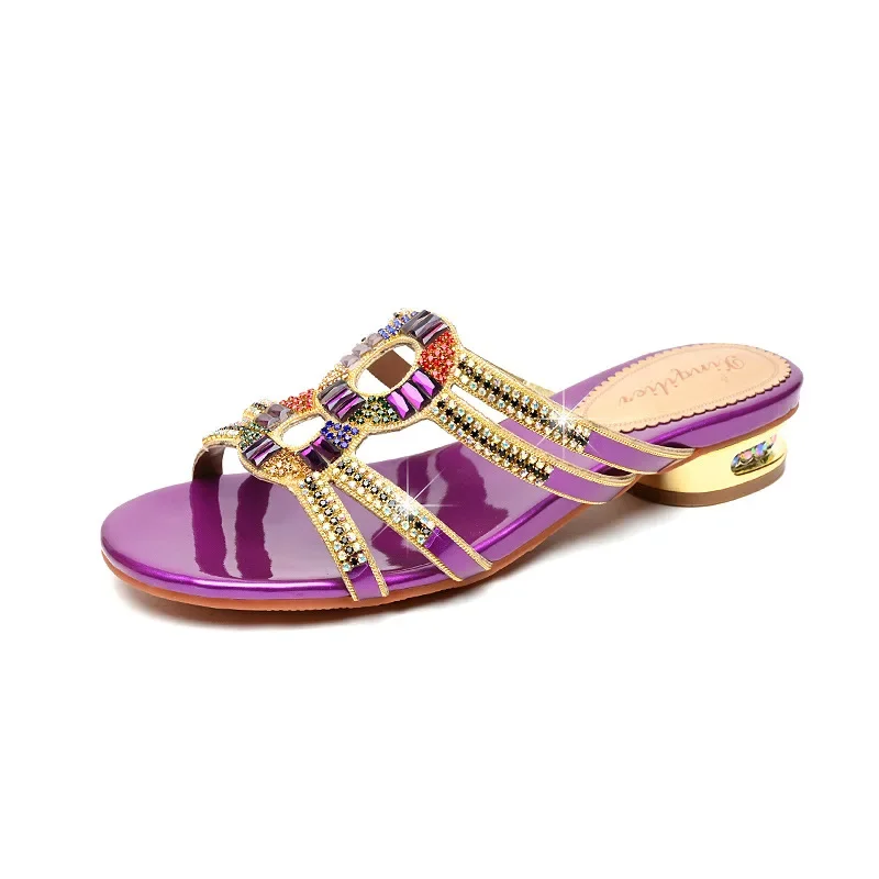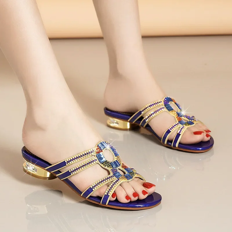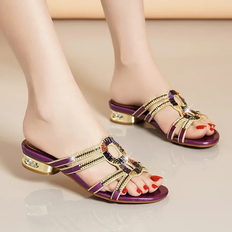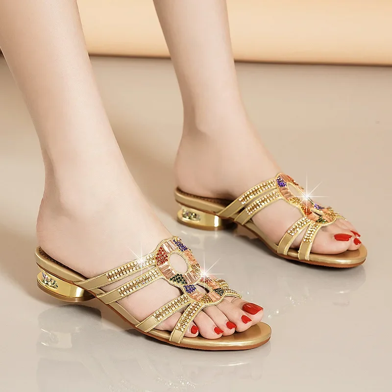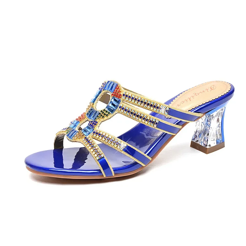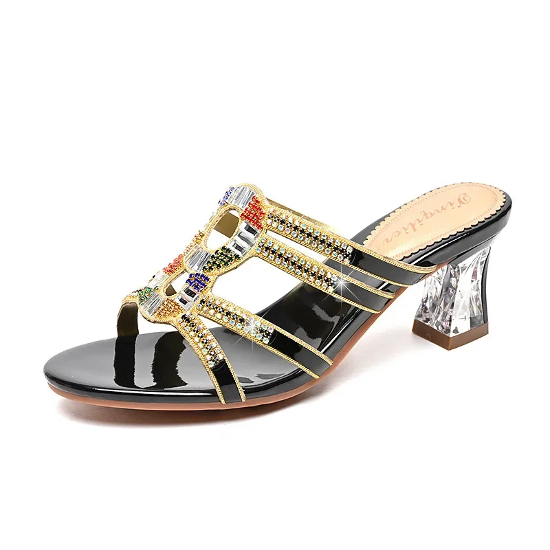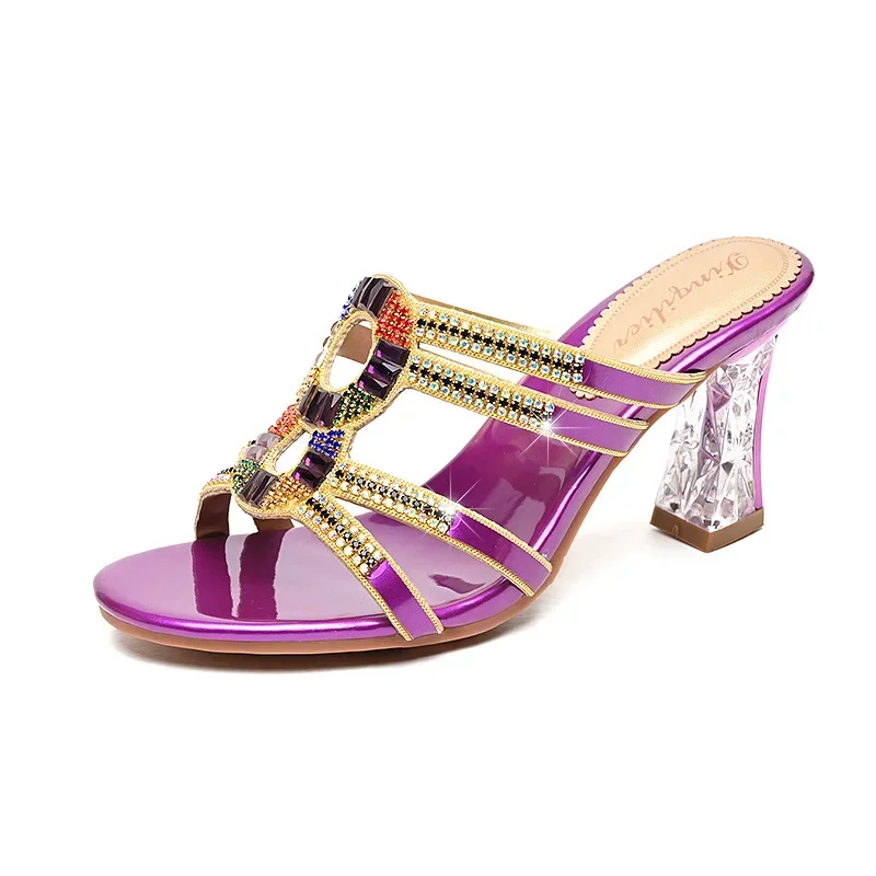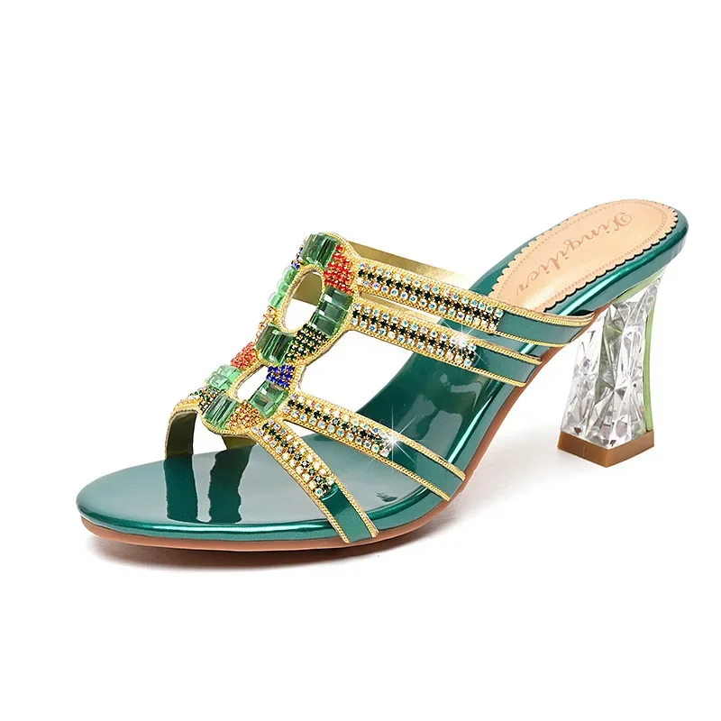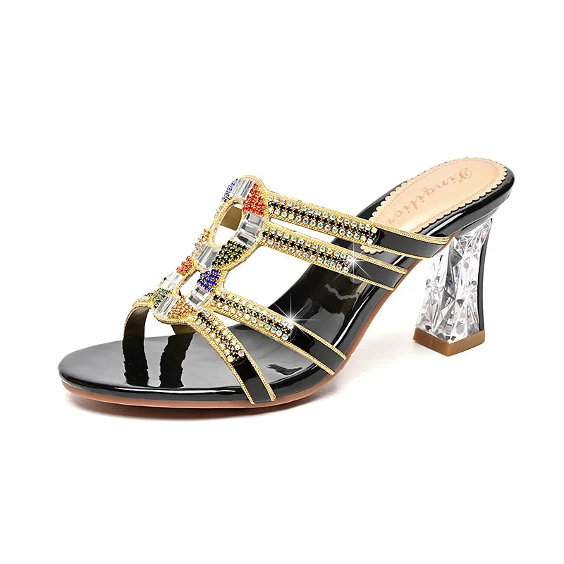 Diamond-embedded high heel summer slippers