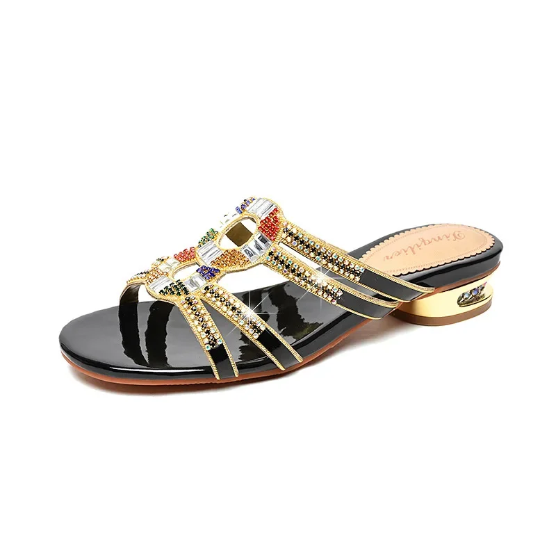 Unleash your inner fashionista this summer with the luxurious Diamond-Embedded High Heel Summer Slippers. Crafted with exquisite attention to detail, these slippers combine comfort with sophistication, making them the perfect choice for both outdoor adventures and casual gatherings. With a chic design that features sparkling diamond embellishments, these slippers will not only enhance your outfit but also provide you with a touch of glamour that is sure to turn heads.
