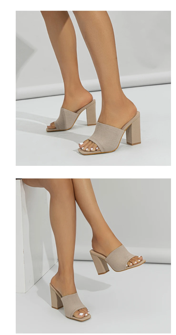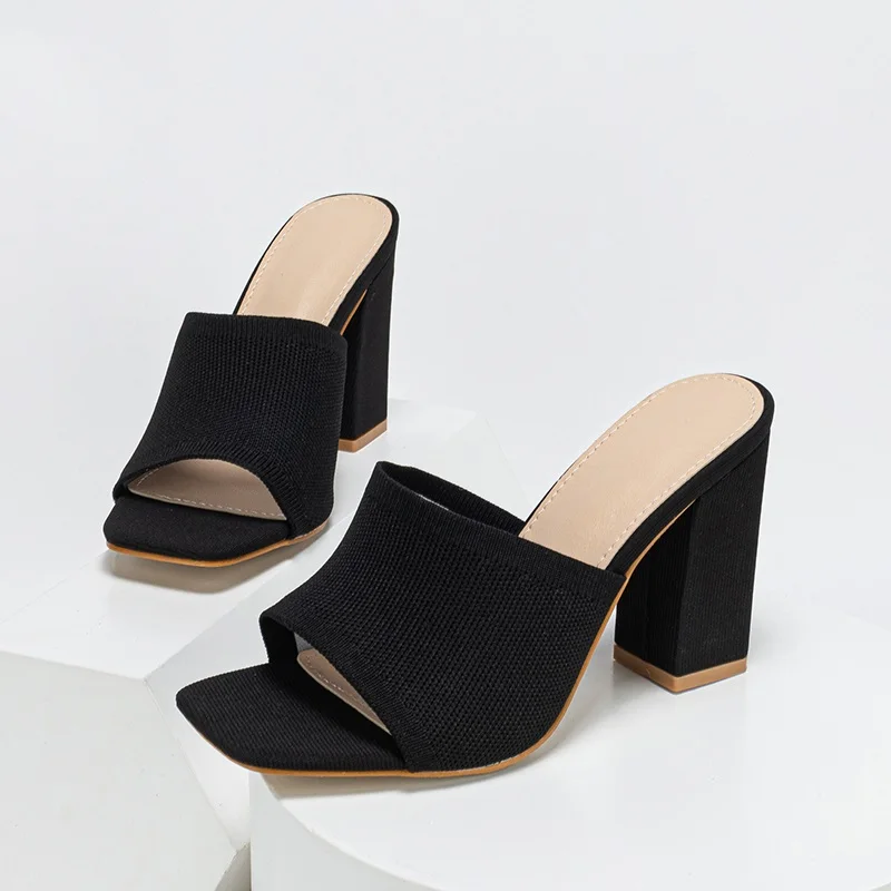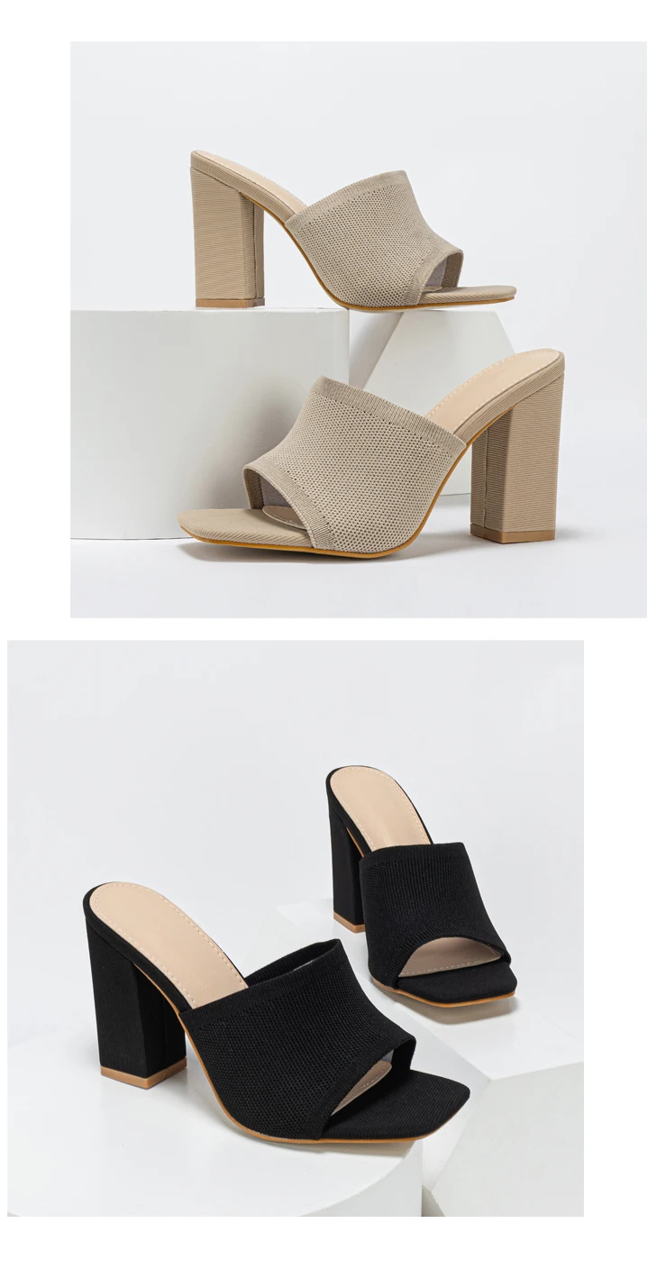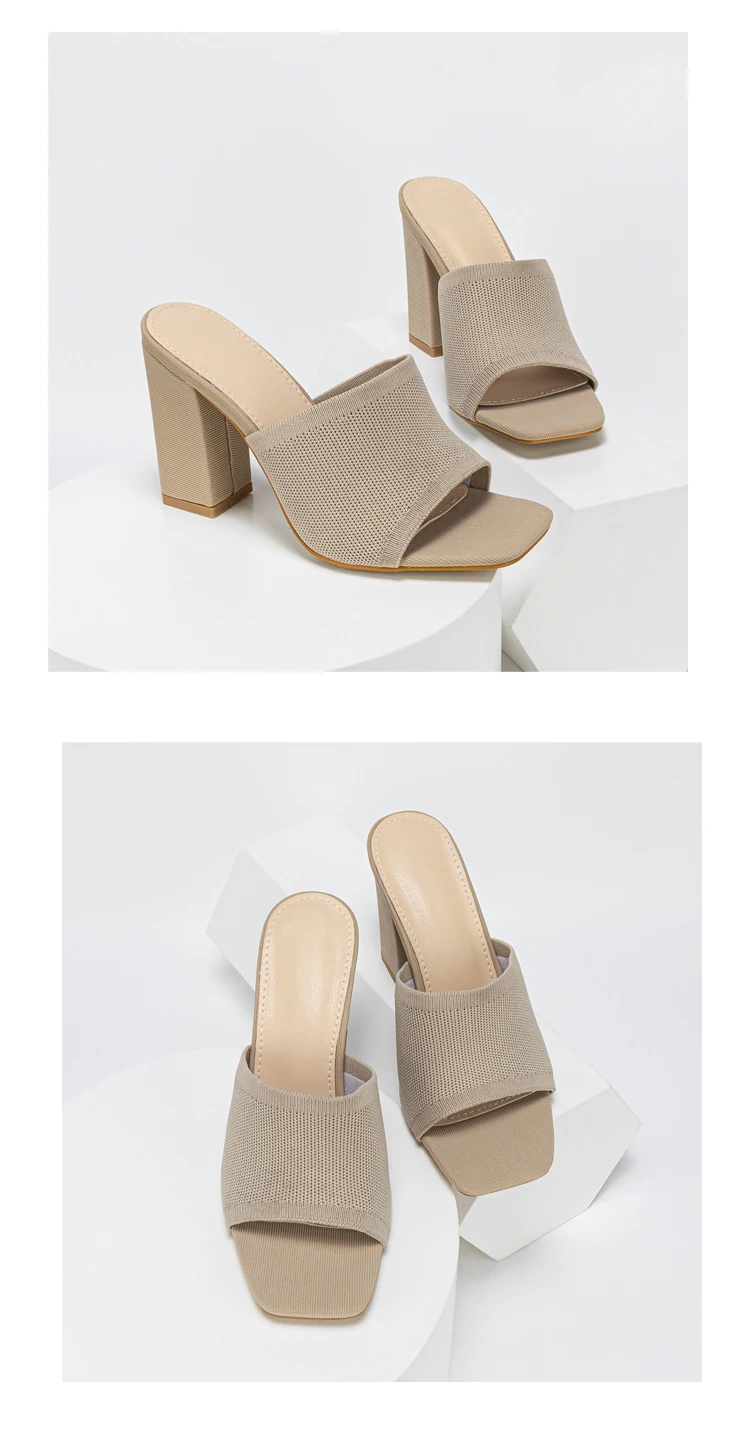Double-layer Platform Slipper for Women 2023 New Fashion Chunky Heel Knitted Wool Fashion Mules Sandals Walking Comfy Shoes