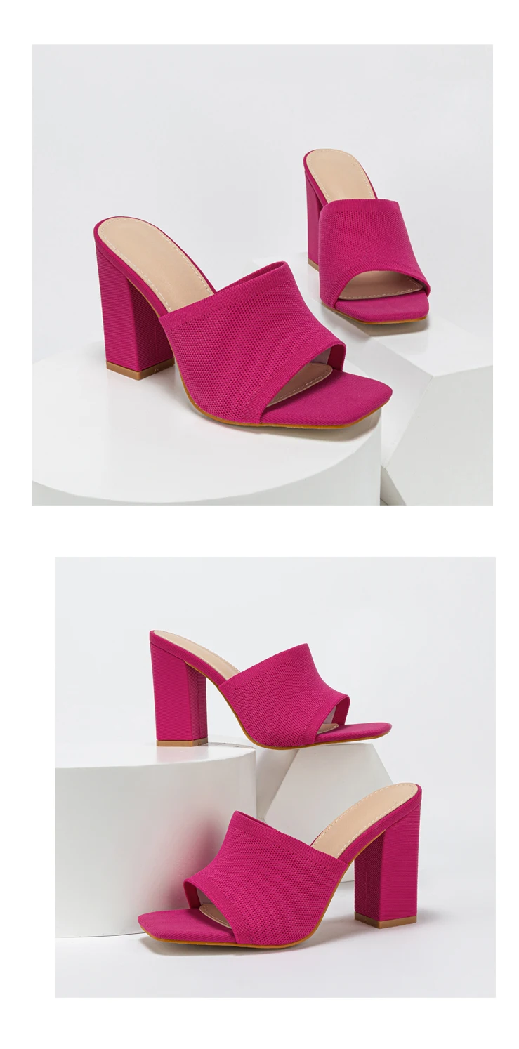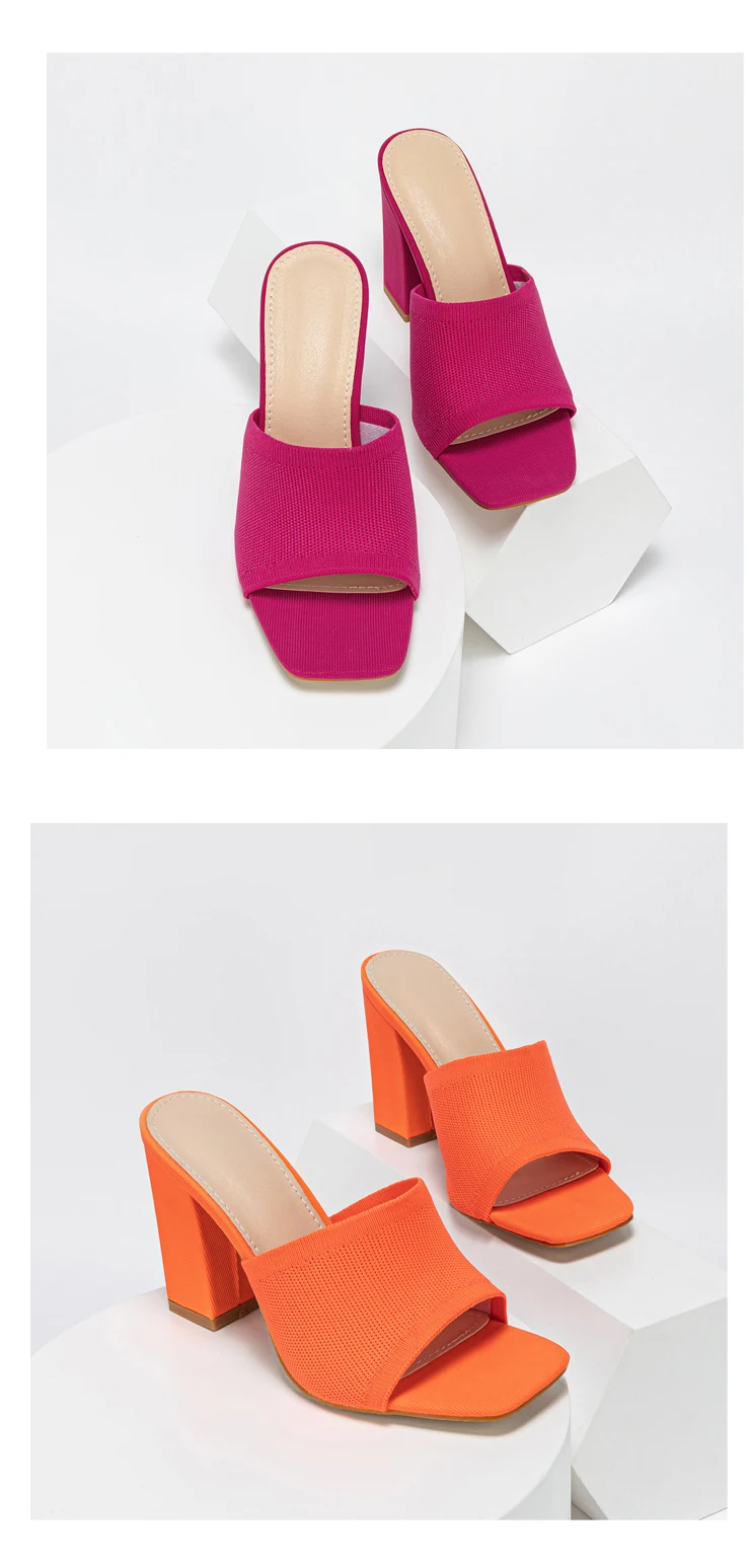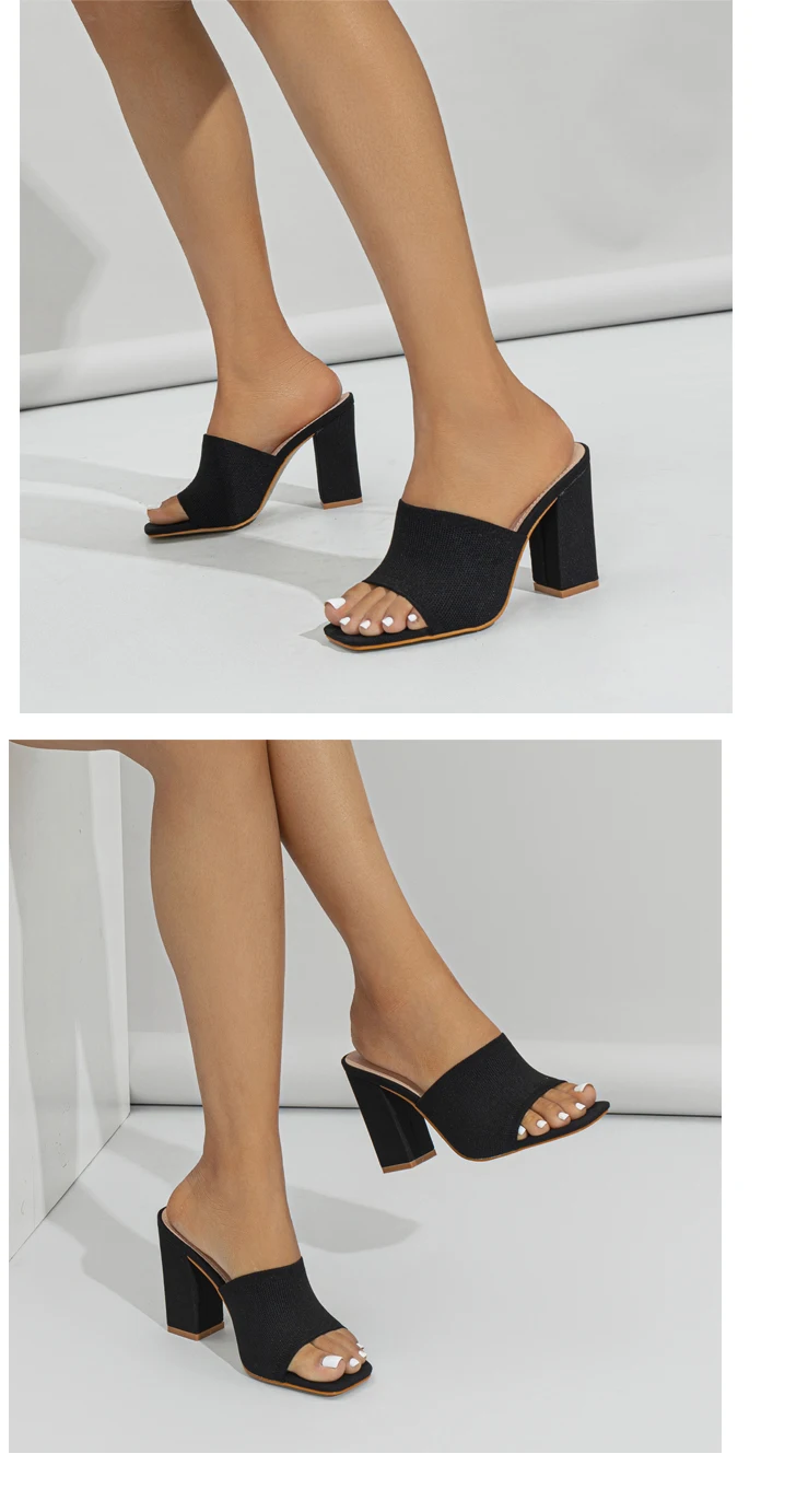 Double-layer Platform Slipper for Women 2023 New Fashion Chunky Heel Knitted Wool Fashion Mules Sandals Walking Comfy Shoes