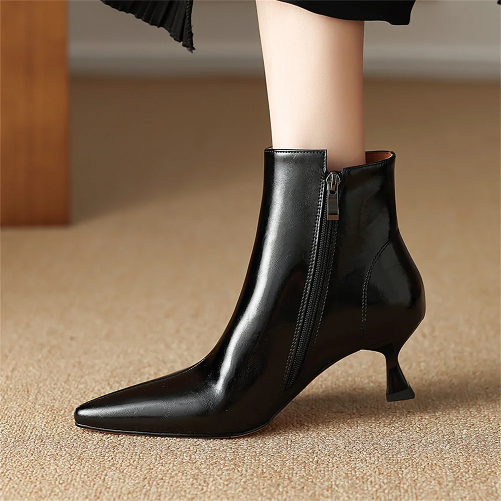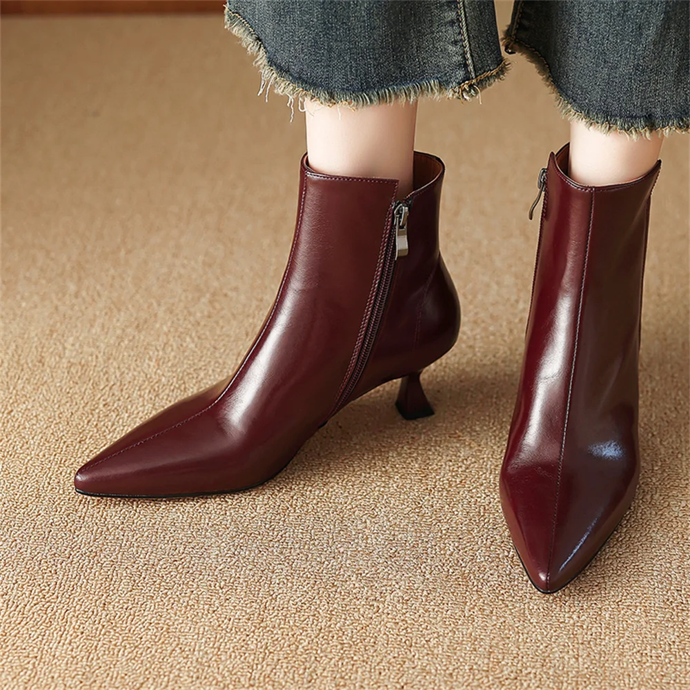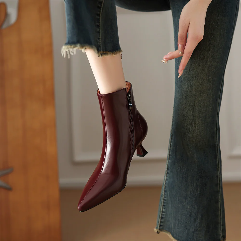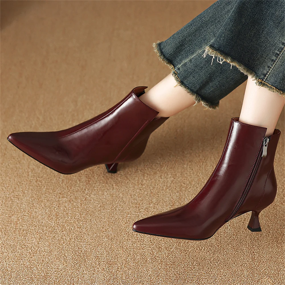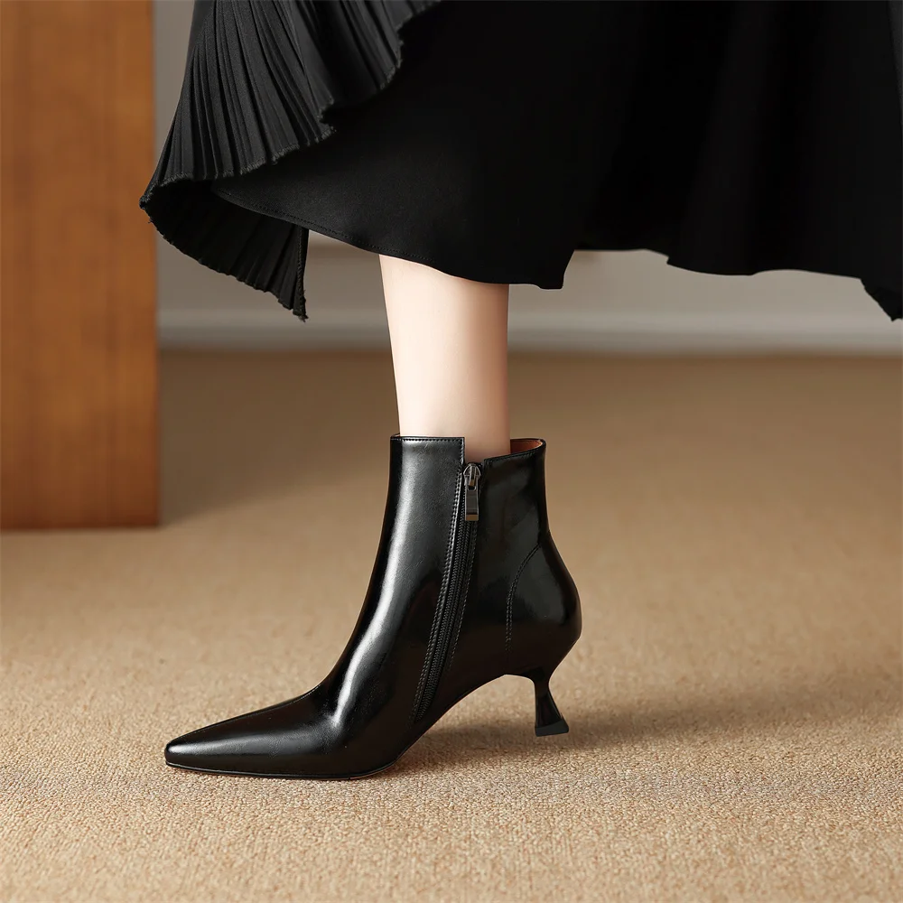 Step into sophistication with our Elegant High Heel Ankle Boots, crafted from premium genuine leather. These boots are designed to elevate your style while providing outstanding comfort and durability. Whether you are attending a formal event, heading to the office, or enjoying a night out, these boots will be your go-to footwear for any occasion.