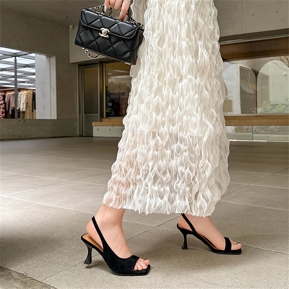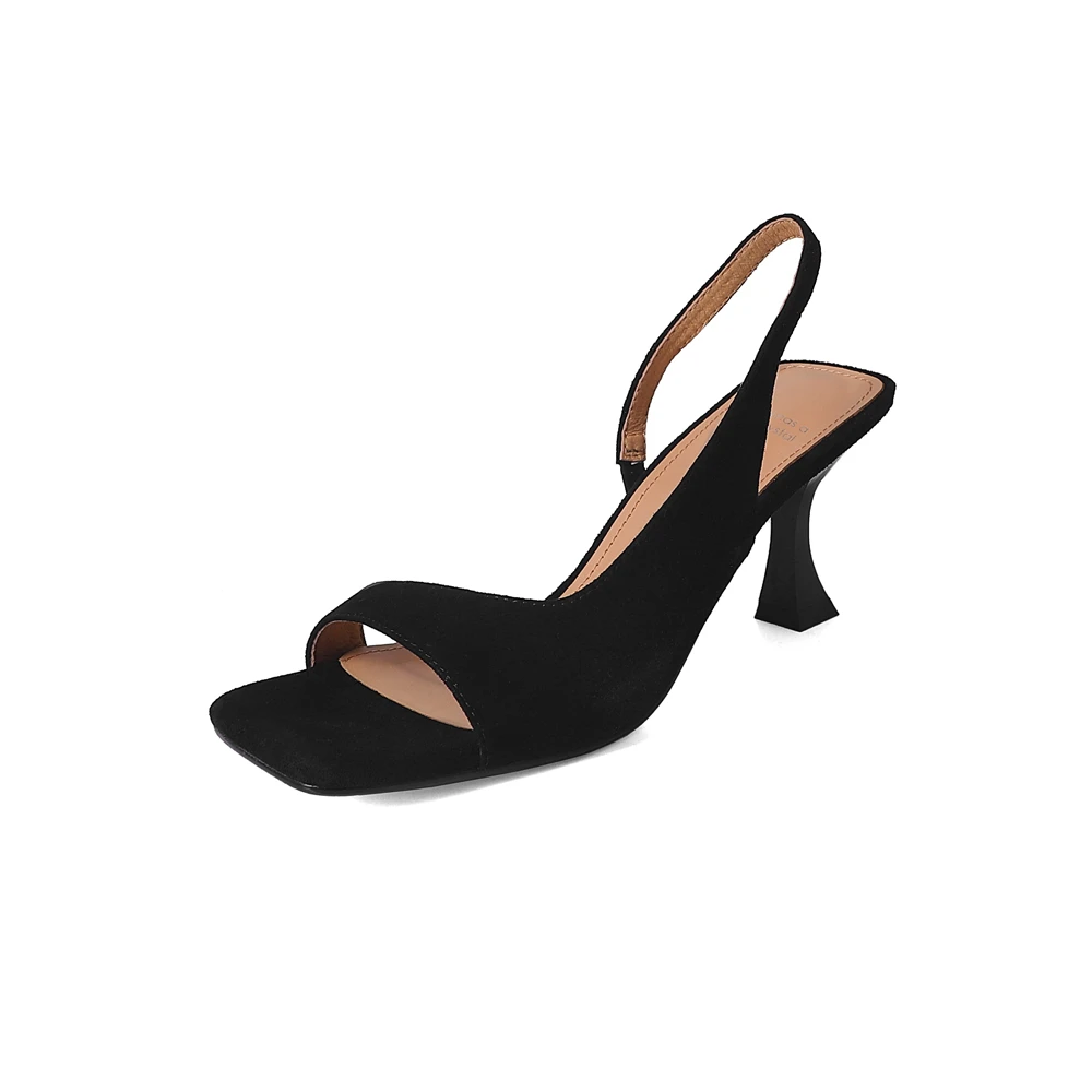 Elegant high heeled sandals genuine leather square toe summer shoes