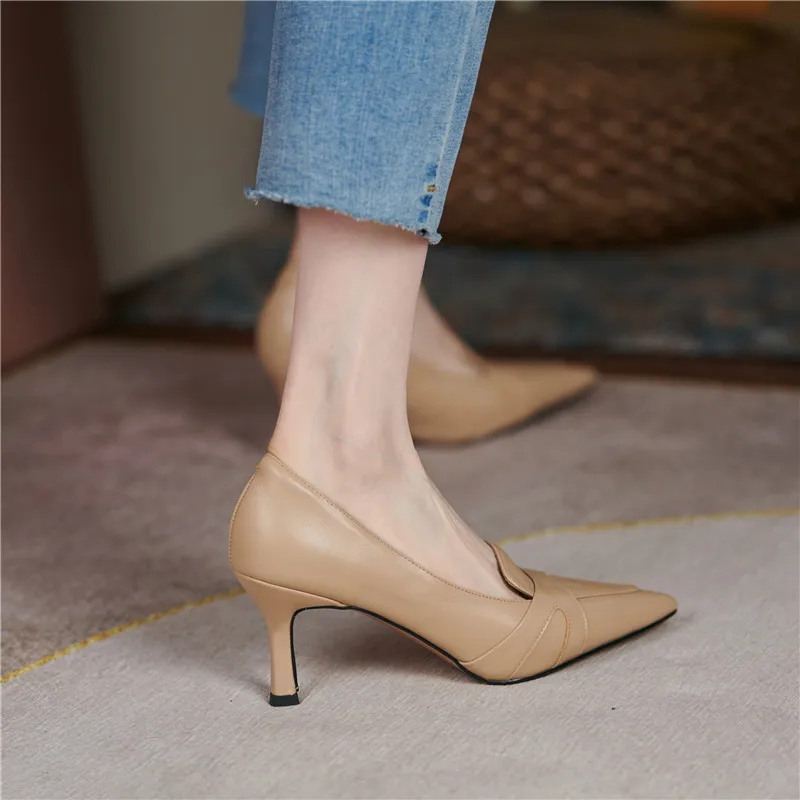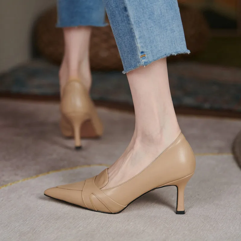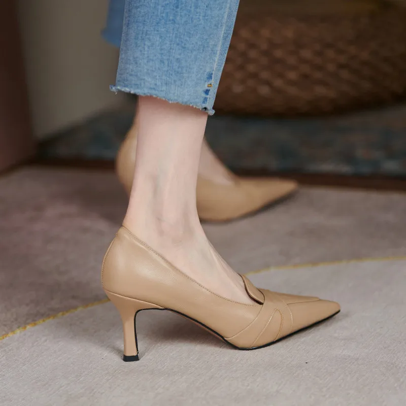 Step into sophistication with our Elegant Leather Pointed Toe Heels, designed specifically for the modern woman who values both style and comfort. Crafted from premium genuine cow leather, these heels boast a classic pointed toe silhouette that elevates any outfit, making them perfect for weddings, parties, or formal events. With a comfortable platform and a chic thin heel, these shoes are the ultimate blend of elegance and practicality.