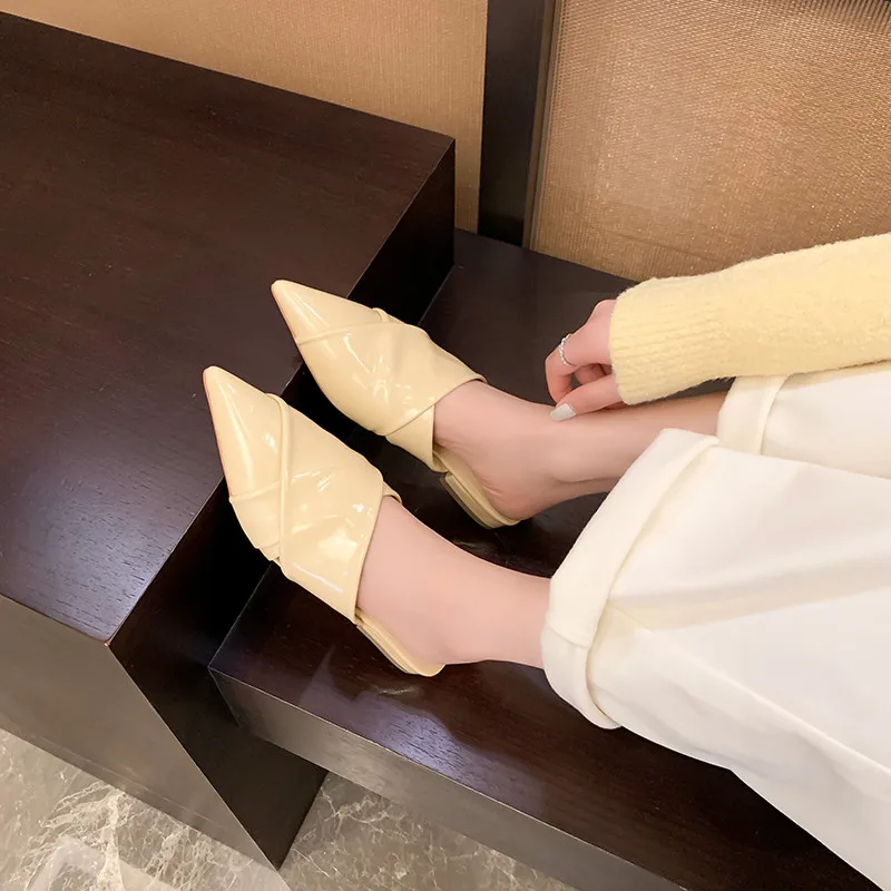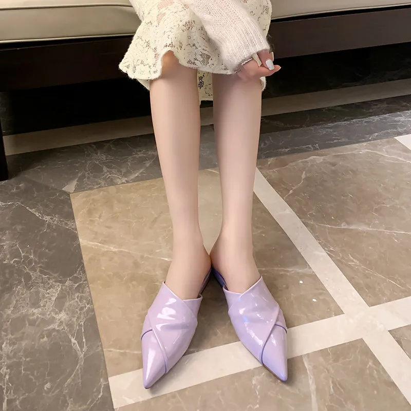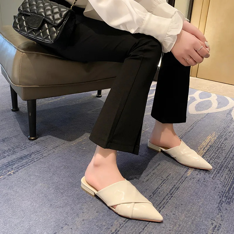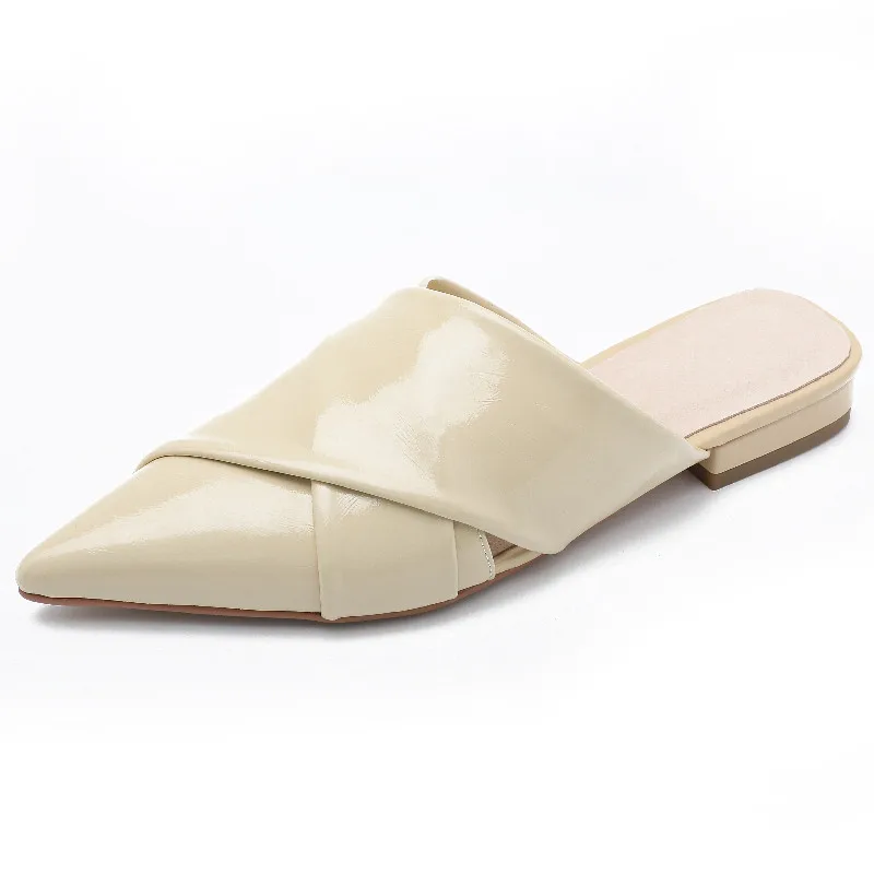 Elegant pointed toe low heel leather mules sandals