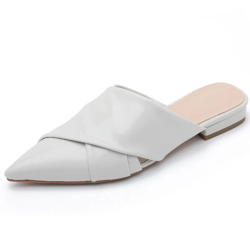 Elegant Pointed Toe Low Heel Leather Mules Sandals