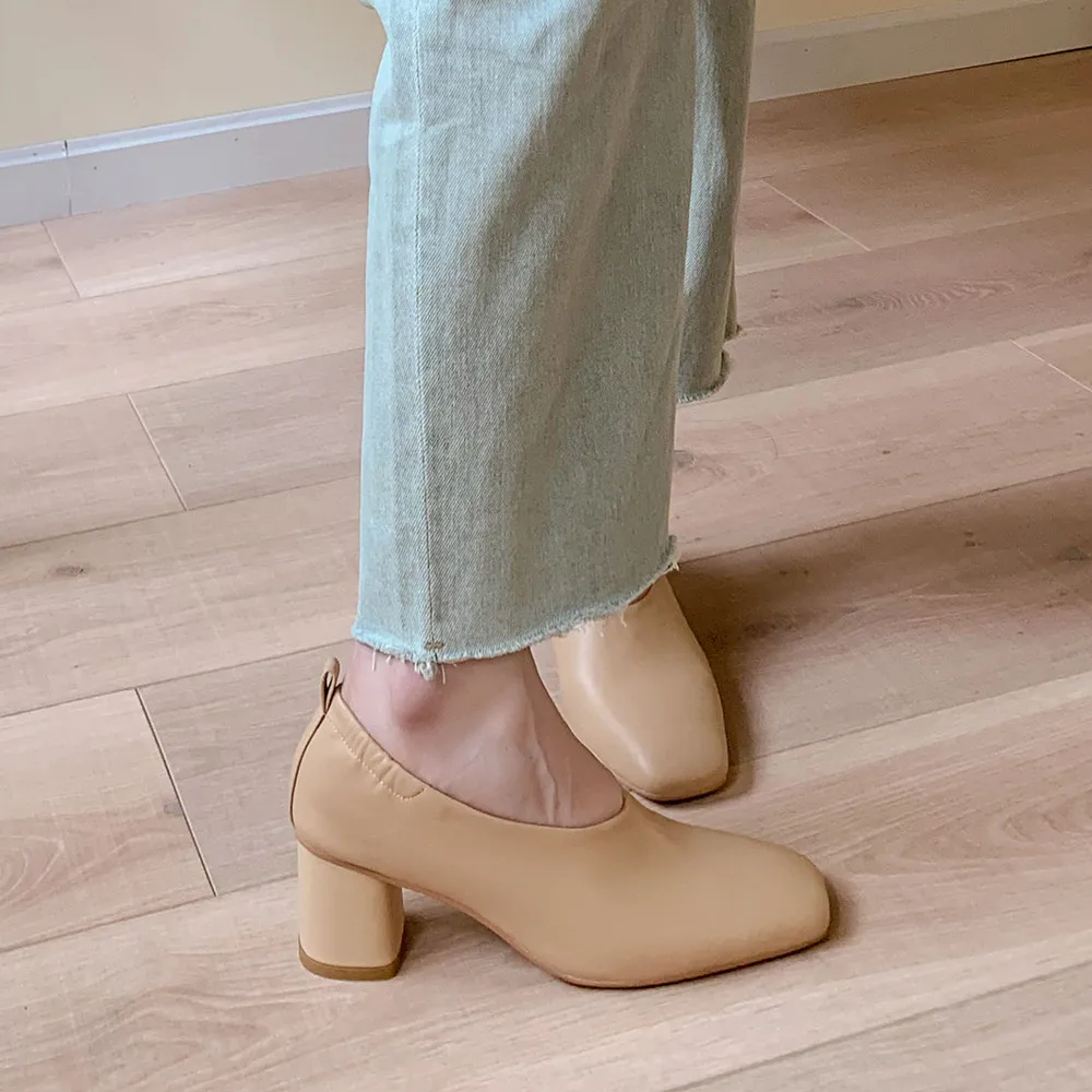 Elegant Square Toe High Heel Pumps in Genuine Leather