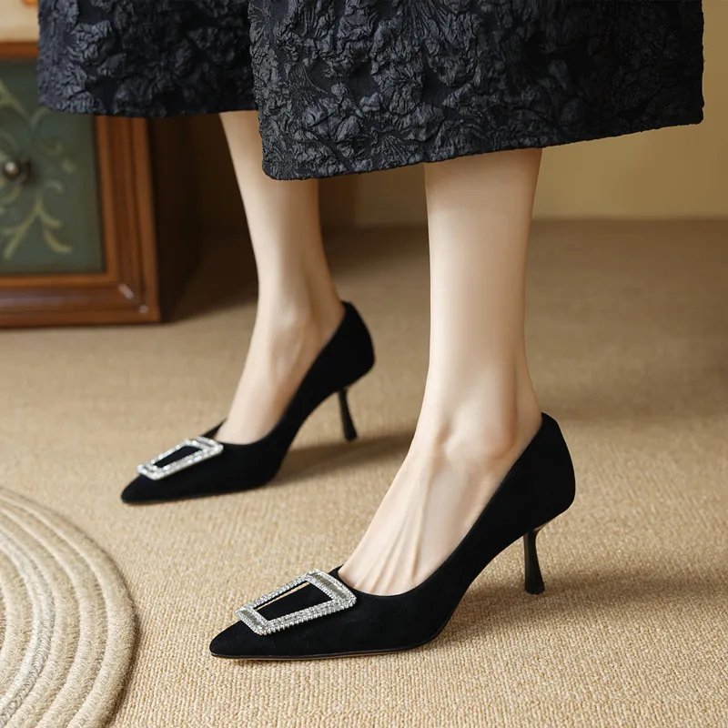 Discover the Elegance of Our Elegant Thin High Heels Pointed Toe Rhinestone Leather Pumps