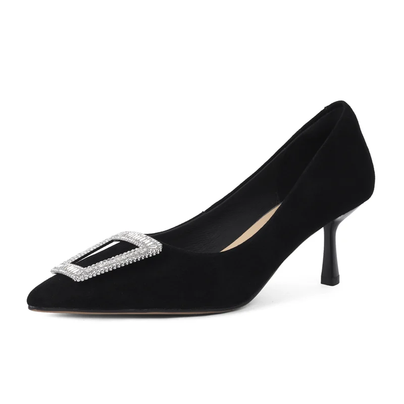 Step into sophistication with our Elegant Thin High Heels Pointed Toe Rhinestone Leather Pumps. Designed for the modern woman who values both style and comfort, these pumps are the perfect addition to any wardrobe. Whether you’re attending a party, a formal gathering, or simply want to elevate your everyday style, these heels will ensure you make a stunning impression.