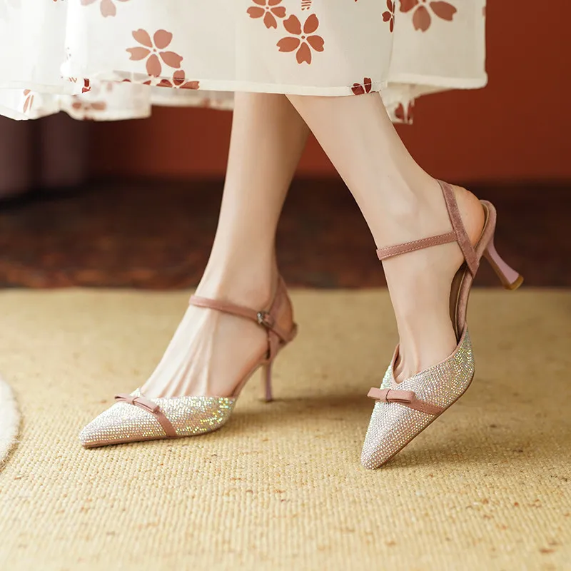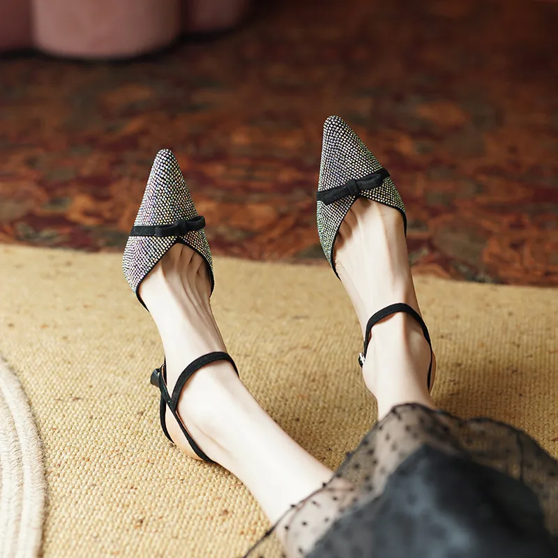 - Modern Chic: The pointed toe shape and delicate bow detail offer a contemporary twist to classic sandals.