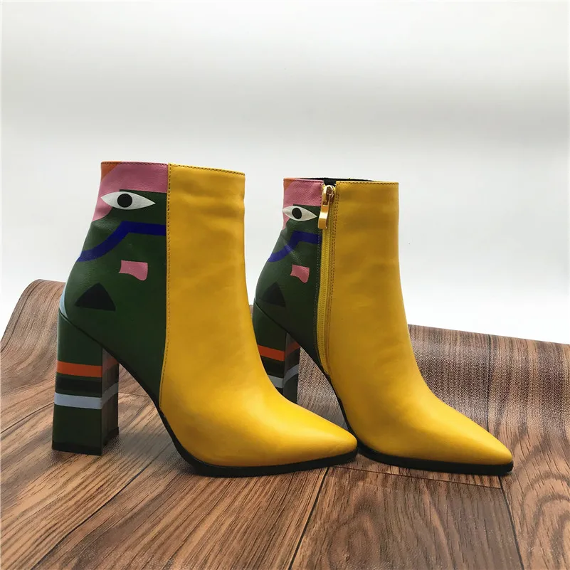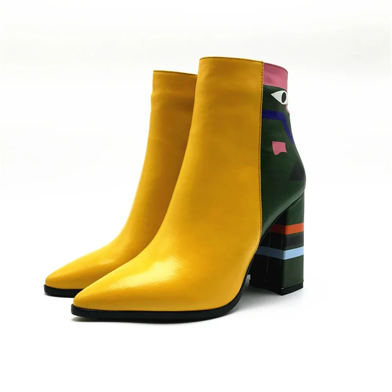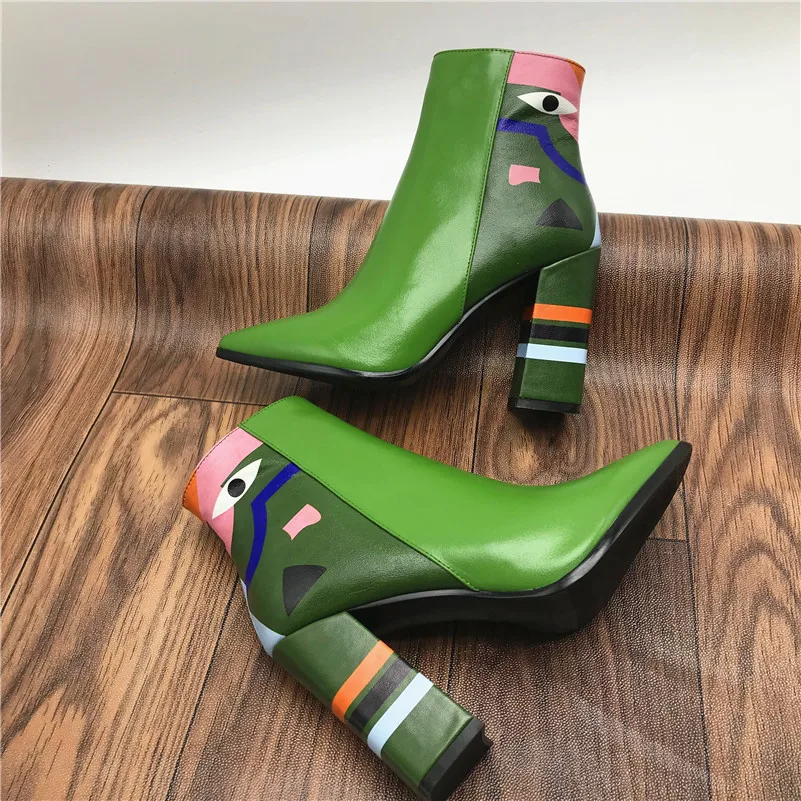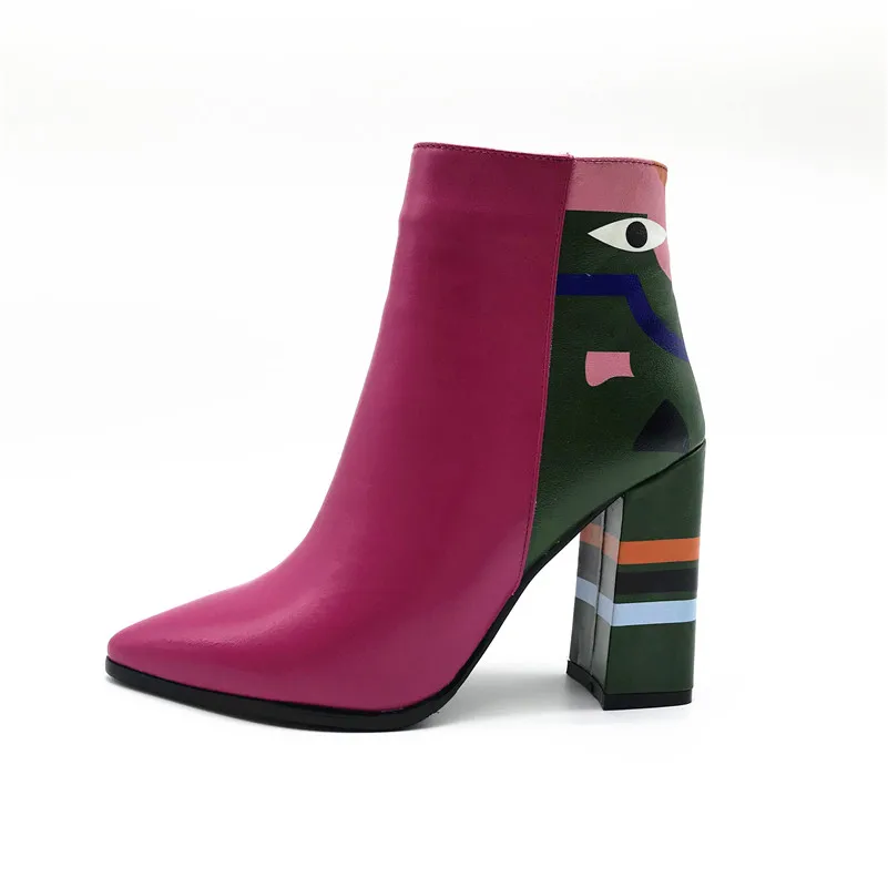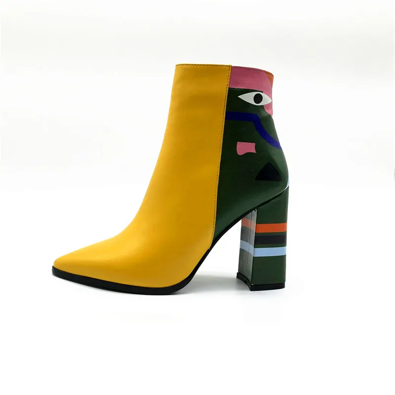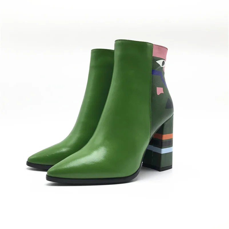 The Green Low Heel Pumps by Mira embody the perfect blend of boldness and elegance. Crafted from premium cowhide leather, these pumps are distinguished by their unique artistic design and exceptional comfort. The low, wide heel ensures optimal stability, while the vibrant color palette adds a splash of cheer to any outfit.