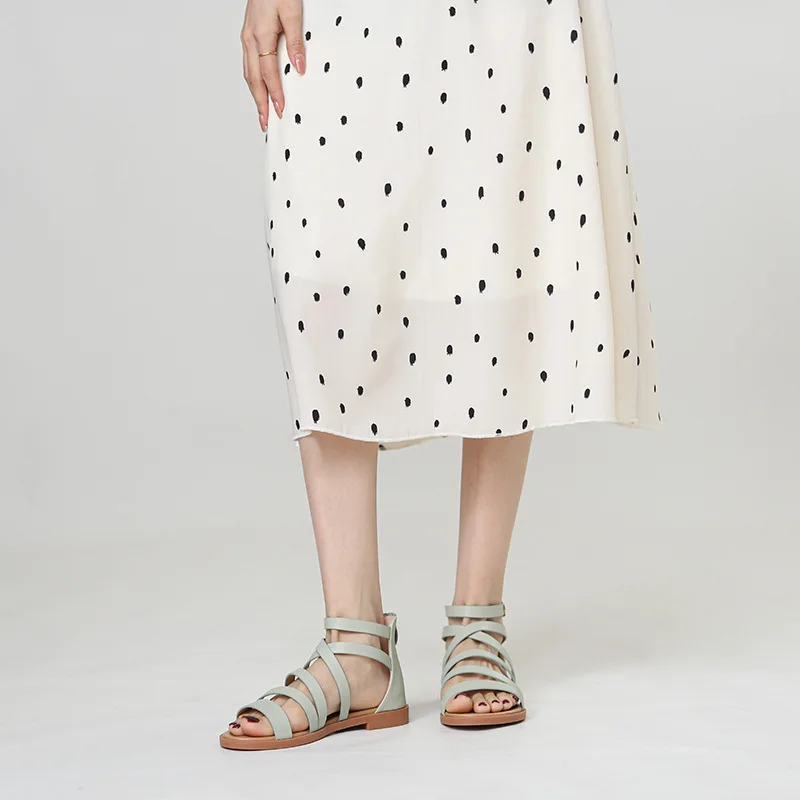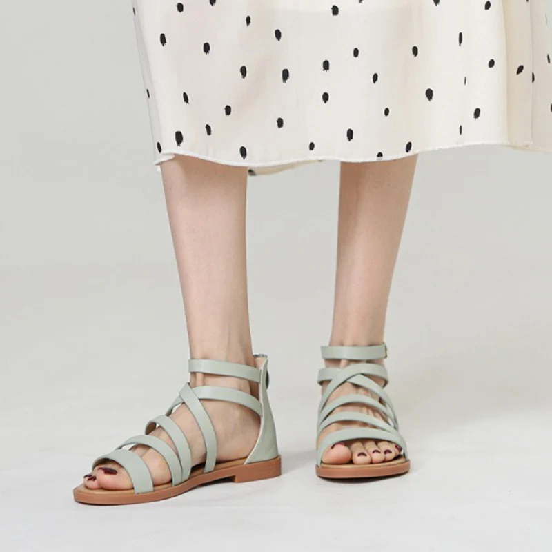 Flat sandals with back zipper and slim strap