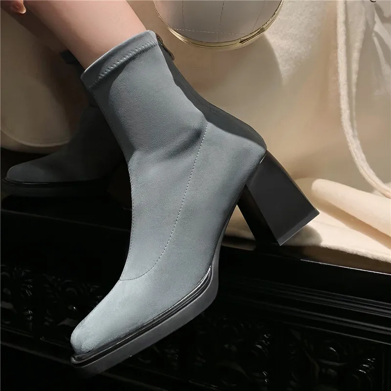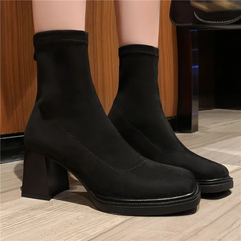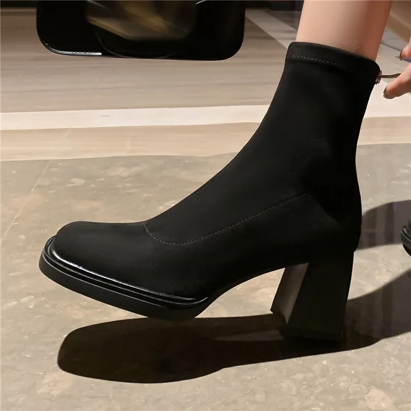 Elevate Your Style with Our Flock Zipper Ankle Boots