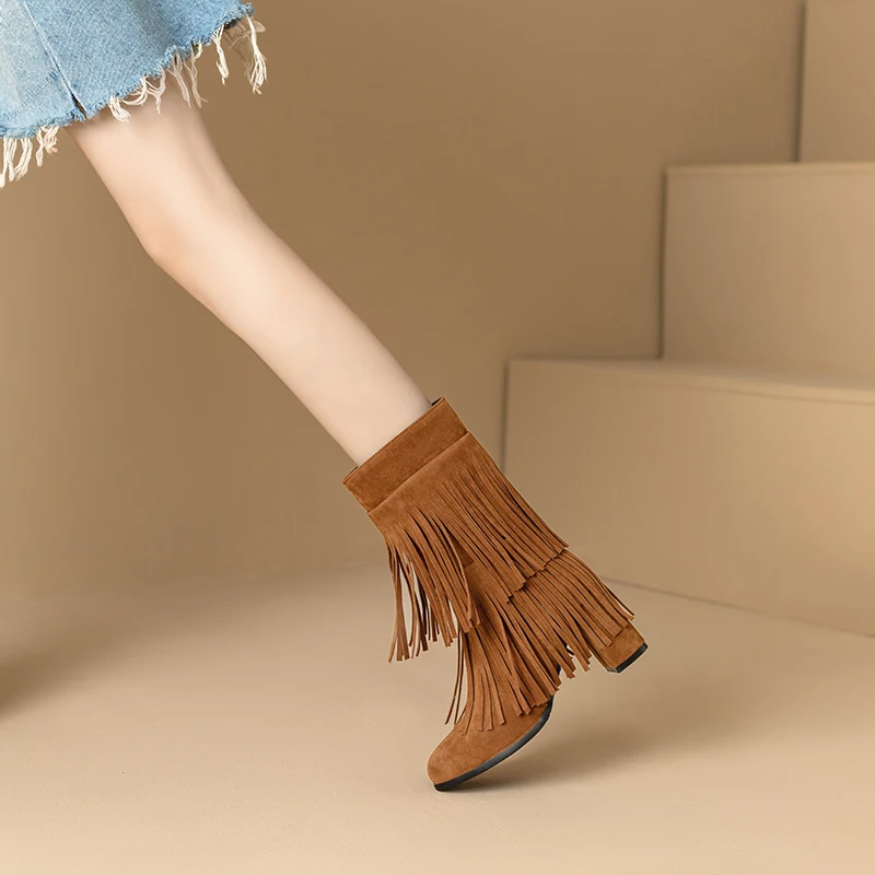 - Stylish Design: The fringe and zipper details give these boots a trendy look that pairs well with various outfits.