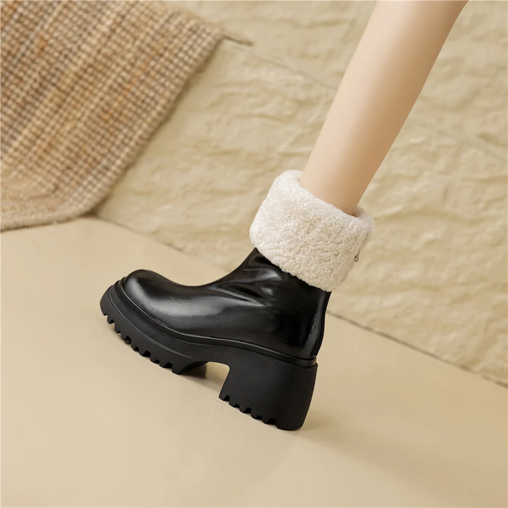 Step into style and comfort with our Genuine Leather Ankle Boots featuring high heels and a convenient zipper. Designed for the modern woman, these boots combine timeless elegance with practicality, making them the perfect addition to your winter wardrobe. Crafted from premium cow leather, they ensure durability and a luxurious touch, while the plush lining provides warmth and coziness during the colder months.